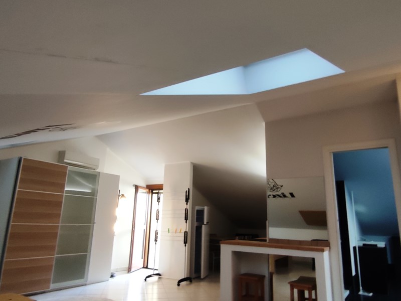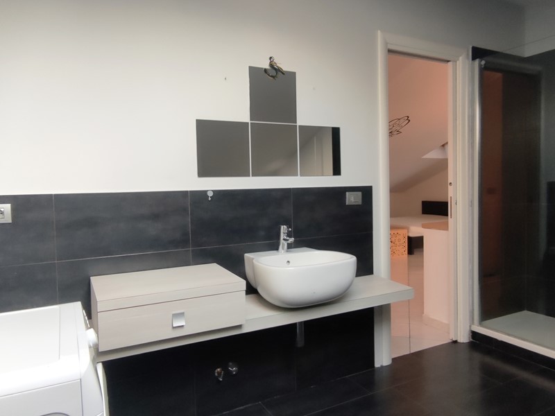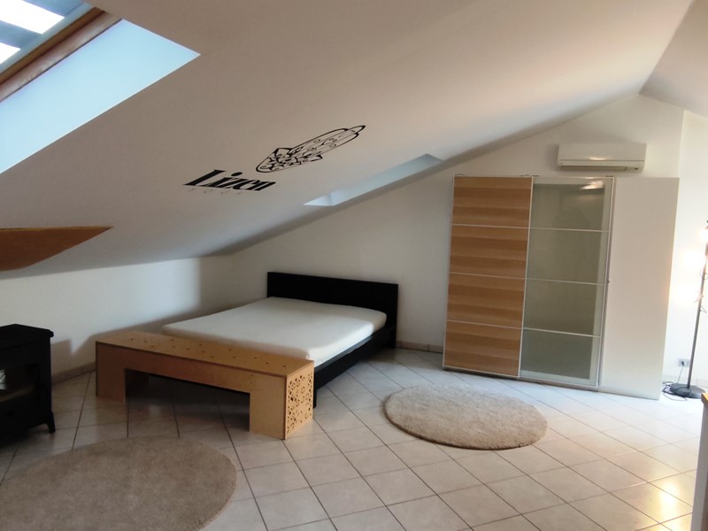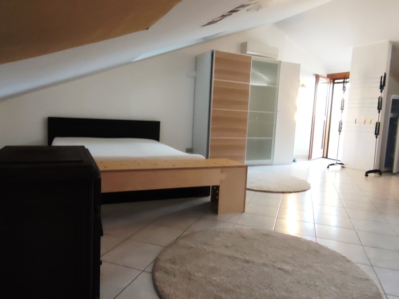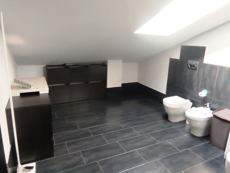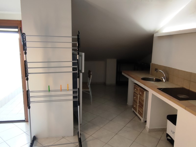 proponiamo in vendita alloggio posto in via ecclesia all'ultimo piano di palazzina di recente edificazione in ottime condizioni con accesso comodo e senza barriere architettoniche comprensivo di posto auto e cantina al piano terreno, l'alloggio posto su due piani si sviluppa con cucina soggiorno, camera da letto matrimoniale e bagno al piano quarto, collegato da scala esterna ma accessibile anche dall'esterno attraverso vano scala condominiale, mansarda attualmente divisa in ampia camera soggiorno o letto, secondo bagno, cucina, ampio balcone, nella parte di unità abitativa è stata installata stufa con idonea canna fumaria a tetto, l'unità immobiliare si presta sia per una coppia che per un nucleo familiare più ampio