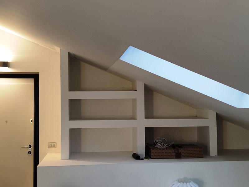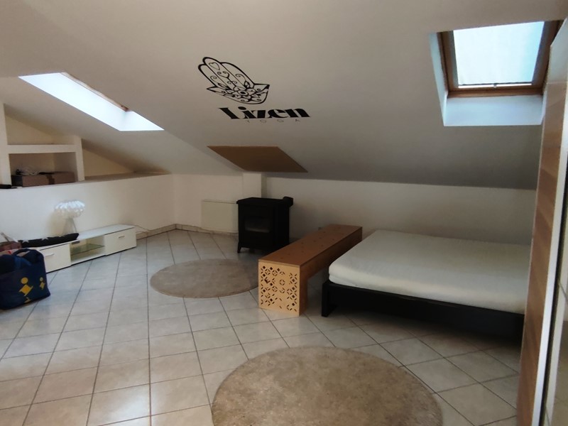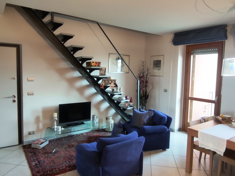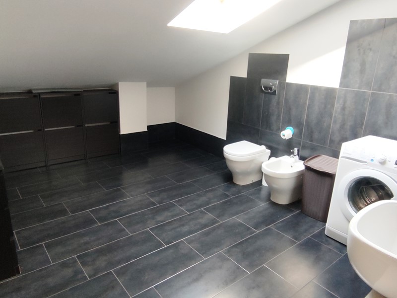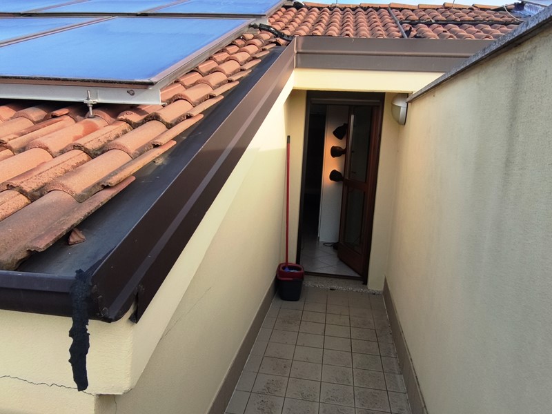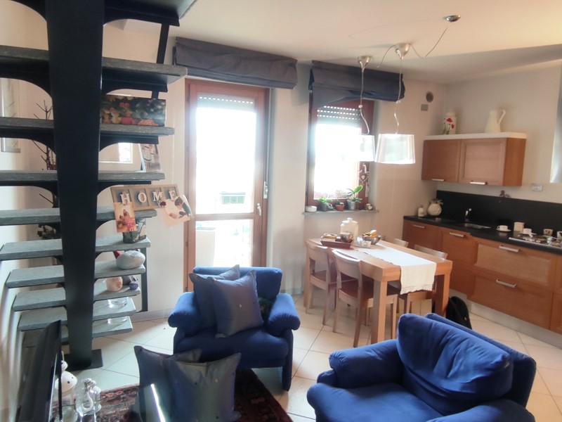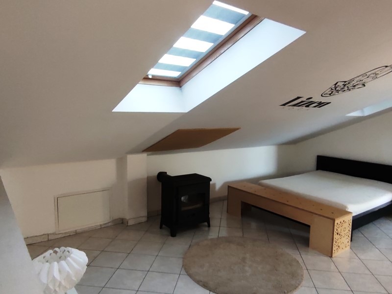proponiamo in vendita alloggio posto in via ecclesia all'ultimo piano di palazzina di recente edificazione in ottime condizioni con accesso comodo e senza barriere architettoniche comprensivo di posto auto e cantina al piano terreno, l'alloggio posto su due piani si sviluppa con cucina soggiorno, camera da letto matrimoniale e bagno al piano quarto, collegato da scala esterna ma accessibile anche dall'esterno attraverso vano scala condominiale, mansarda attualmente divisa in ampia camera soggiorno o letto, secondo bagno, cucina, ampio balcone, nella parte di unità abitativa è stata installata stufa con idonea canna fumaria a tetto, l'unità immobiliare si presta sia per una coppia che per un nucleo familiare più ampio