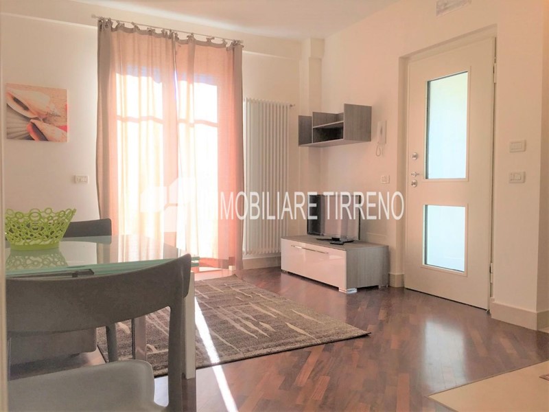 AFFITTO ESTIVO - Marina di Massa RIF.: C122. Appartamento nuovo finemente arredato situato in contesto tranquillo a pochi metri dal centro e dal mare. Si compone di soggiorno con angolo cottura due camere matrimoniali, divano letto matrimoniale in soggiorno, bagno con doccia chiusa, due terrazze. Accessoriato di lavatrice, lavastoviglie, frigo con freezer, micronde, tv e aria condizionata. Completo di posto auto interno al condominio.