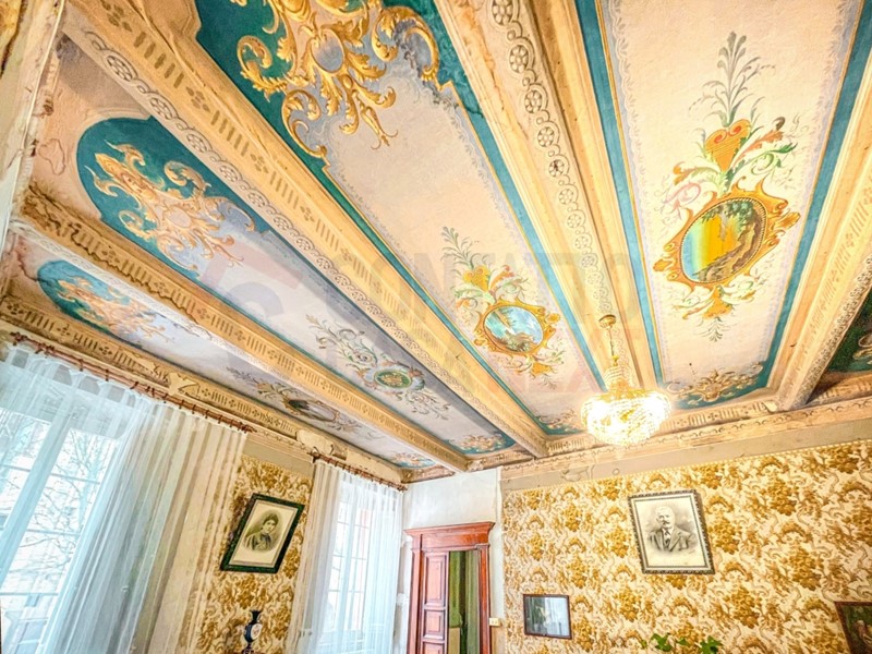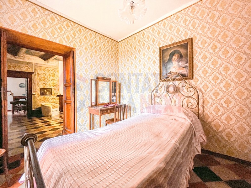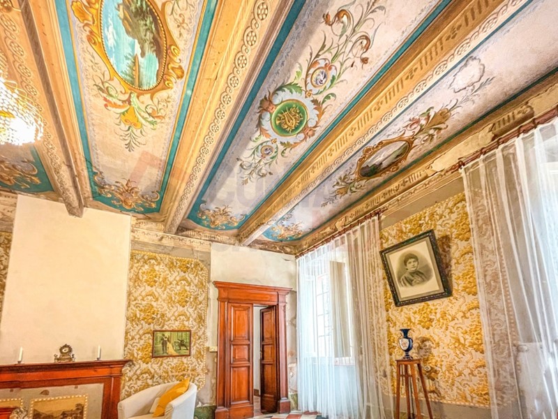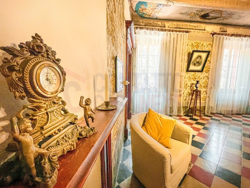 Questa grande casa indipendente d'altri tempi si sviluppa su tre livelli; a piano terra vi troviamo due soggiorni, uno che dà accesso a un'ampia sala da pranzo con cucina e l'altro che dispone di camino ed è collegato a diversi spazi come la lavanderia e vari ripostigli. I pavimenti tipici, i soffitti in legno e gli arredi antichi creano un'atmosfera accogliente e confortevole. Al secondo piano accediamo invece all'incantevole salone con affreschi storici sul soffitto; sembra di fare un salto indietro nel tempo. Si compone di sala da pranzo e tre camere da letto di cui una singola e due matrimoniali che dispongono di bagno riservato.