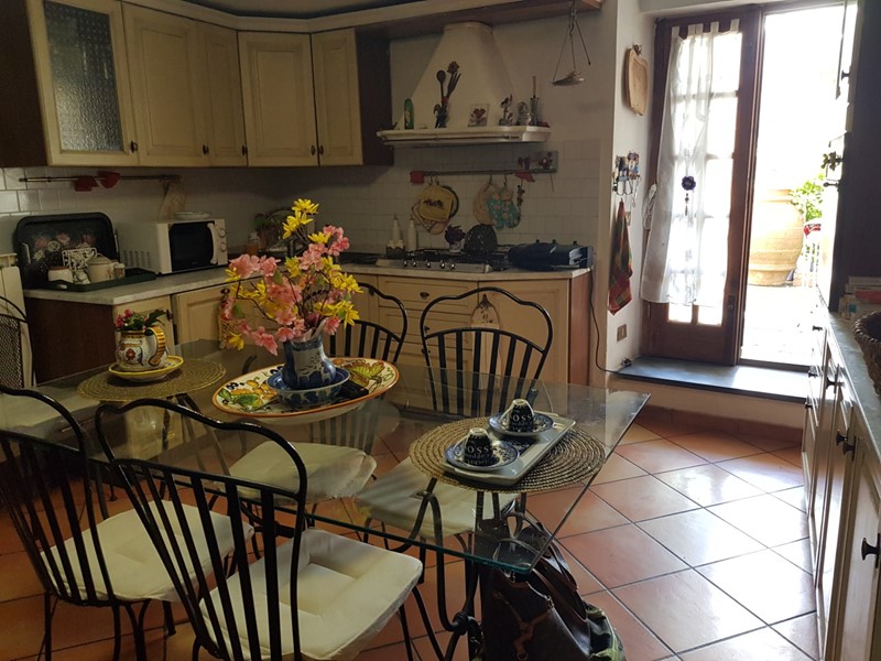 CALCI - Porzione di TERRATETTO con ampi spazi, ben tenuto, bellissimi gli affacci, composto al piano terra da locali sgombero/taverna dove è stato creato un ampio soggiorno, cucina abitabile, ripostiglio/sottoscala e bagno con doccia. Al piano terra rialzato, con accesso sia dall'interno che dall'esterno, soggiorno con camino, cucina abitabile, sala pranzo, antibagno e bagno con finestra e vasca; da tutte le stanze si accede ad una terrazza. Al primo piano, disimpegno, camera matrimoniale e due camere singole. Mansarda dove è possibile ricavare la quarta camera. Giardino di circa 100mq con posti auto. Ideale anche per soluzione genitori/figli. Classe G. Riferimento CA0019T