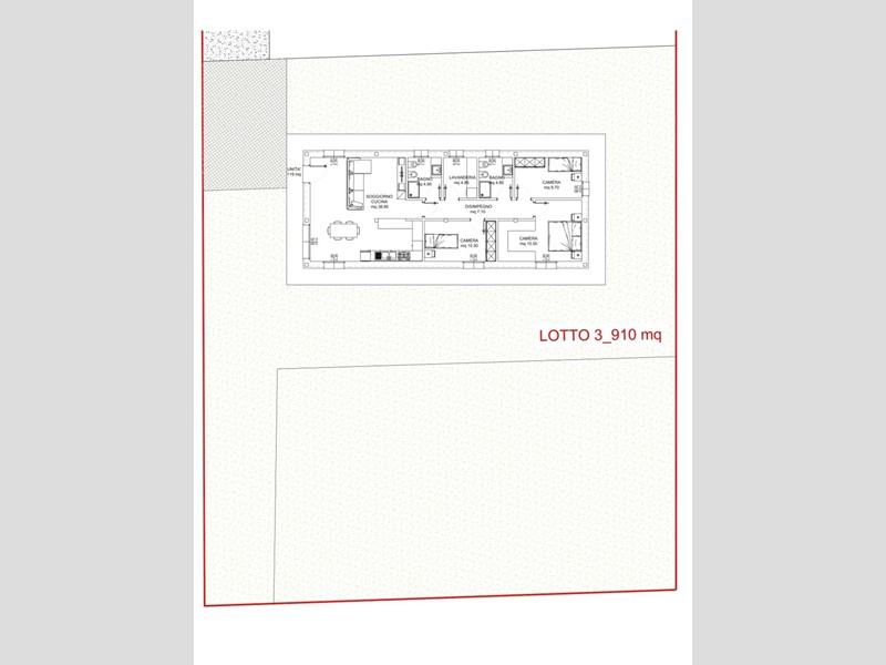 MONTEPRANDONE - Villino unifamiliare di circa 120 mq + lotto agricolo di circa 410 mq. L'edificio è disposto su un unico livello è così composto: soggiorno-cucina, 3 camere, 2 bagni, disimpegno e locale lavanderia.