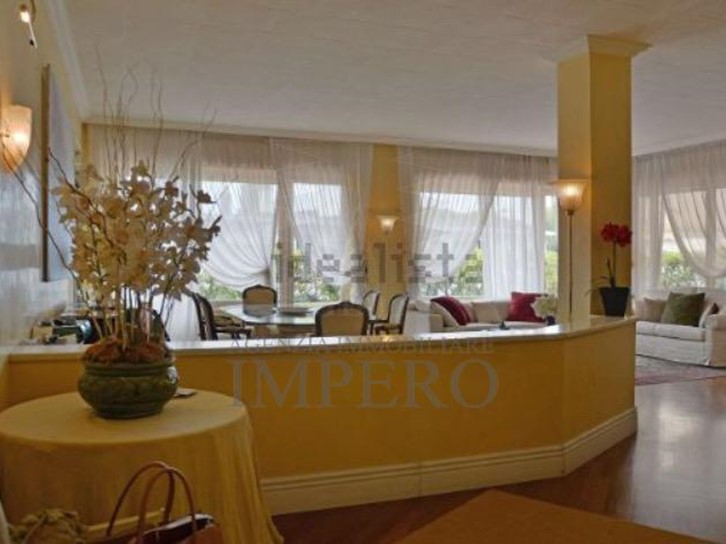Rif.22235 - Sanremo. Zona Solaro. Proponiamo appartamento signorile all'inizio di strada Solaro, comodo ai tutti i servizi trai quali: supermercati, campi da tennis, campi sportivi, spiagge attrezzate, bus. L'appartamento, della superficie 240 mq interni e 250 mq di terrazzo-giardino, è inserito in un quartiere residenziale e fa parte di un condominio dotato di servizio di portierato. All'interno troviamo: salone doppio, quattro camere da letto ognuna con bagno annesso ed ulteriore piccolo bagno ospiti, una cucina abitabile, uno studio e piccola lavanderia. Le rifiniture sono di alto pregio e rendono l'appartamento unico. L'intero appartamento è dotato di parquet in pregiato legno di afrormosia, nei bagni troviamo marmo giallo di Verona e, nel bagno ospiti, il marmo verde "Guatemala"; le pareti sono impreziosite dallo stucco veneziano; le porte hanno intarsi in legno di rosa. L'impianto di climatizzazione ed il riscaldamento sono autonomi. L'intero appartamento è dotato di impianto di allarme. Completano la proprietà la cantina ed un grande garage (ingresso autonomo con serranda elettrica). L'appartamento si affaccia su una grande terrazza, circondata da siepi, in parte piastrellata e in parte dotata di aiuole piantumate con piante mediterranee che rendono l'ambiente rilassante e garantiscono la privacy. L'impianto di irrigazione e le tende da sole sono elettriche e dotate di anemometro.