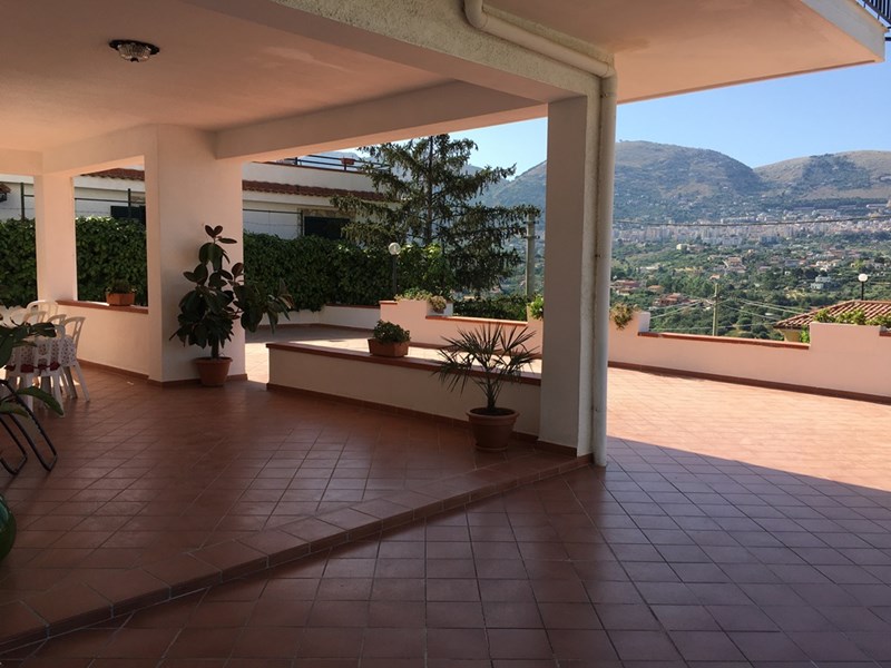 Villetta unifamiliare con vista panoramica su Monreale, Palermo e Montepellegrino, con agrumeto, alberi da frutto e ulivi disposta su tre livelli.
