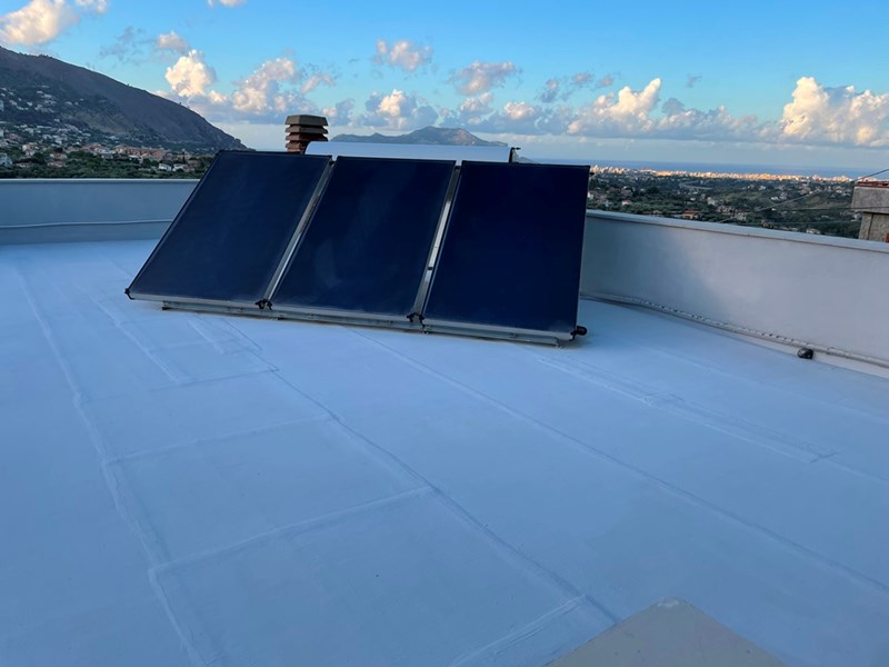Lastrico solare pedonabile con impianto solare con tre pannelli e boiler da 320 litri di acqua sanitaria collegata con tutti i punti acqua calda.