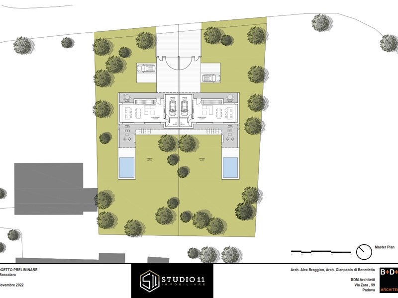 Proponiamo intervento di prossima realizzazione di bi-villa dal marcato tratto architettonico contemporaneo, si caratterizza di soluzioni tecnologiche avanzate nell'involucro di struttura e dell'impiantistica volta all'utilizzo di fonti rinnovabili atte ad una gestione energetica confortevole ed al contempo parsimoniosa. Il progetto prevede due ampie porzioni, con uno sviluppo in verticale disposto su due livelli fuori terra; trattasi di corpi di fabbrica semindipendenti agganciati dalle autorimesse, quali uniche appendici in aderenza. La realizzazione è ubicata in contesto paesaggistico di assoluto pregio, circondato da area verde, con posizione fronte strada secondaria; il lotto completa una capacità edificatoria dell'area garantendo inalterato il contesto paesaggistico circostante. Ognuna delle porzioni poggia su lotti di 900 mq , sui quali si svilupperanno giardini esclusivi con possibilità di realizzazione di piscine per incorniciare una suggestiva vista collinare, è quindi garantito uno scoperto consono al tenore dell'edificio di futura edificazione. Una soluzione unica nel suo genere, per chi cerca un ubicazione tranquilla, immersa nel verde ed al contempo comoda a tutti i servizi offerti dall'adiacente centro paese.