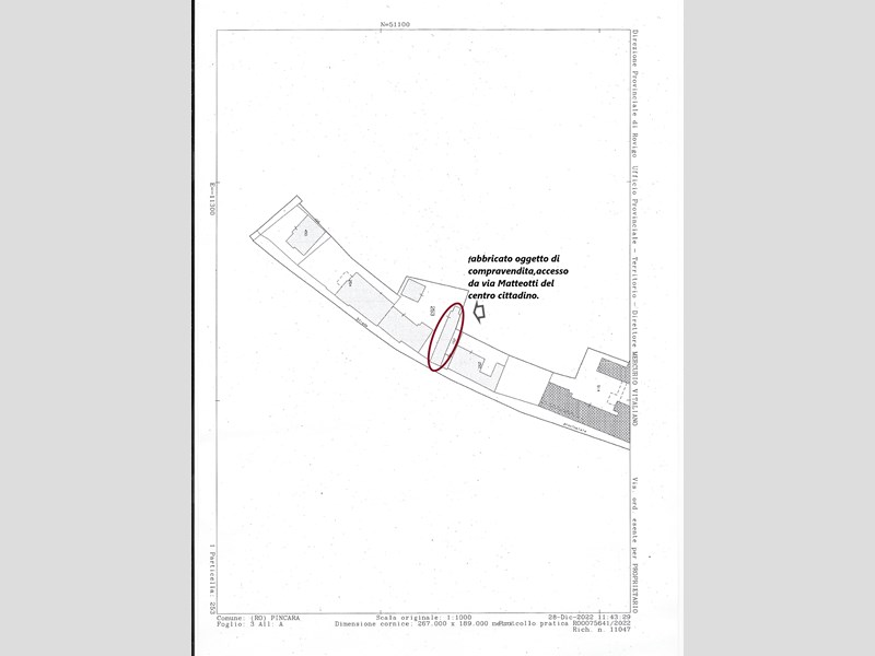 Catasto del comune di Pincara Fg 3 particella 253 Sub 14 categoria C3 classe 2 Rendita 165,89 Euro (2) e fg 3 particella 253 sub 15 categoria A/5 classe 1, rendita 193,67 Euro (1)