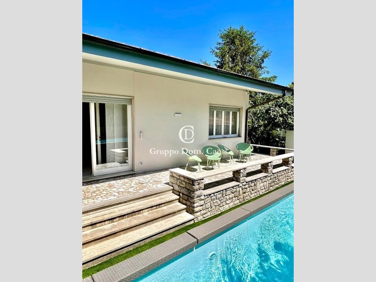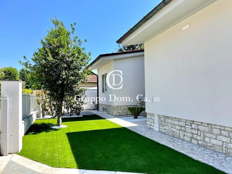 Forte dei Marmi - Centro - Villa singola di nuova costruzione sviluppata su un unico piano con giardino attrezzato, con piscina fuori terra e posti auto. Composta internamente da soggiorno, cucina abitabile, 4 camere di cui 3 matrimoniali e una singola. Rif. AFP718