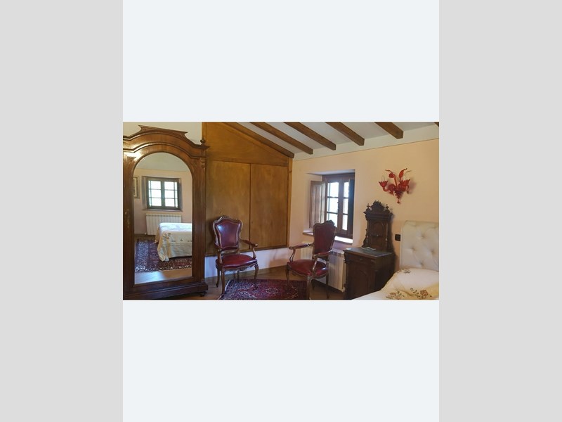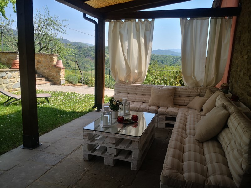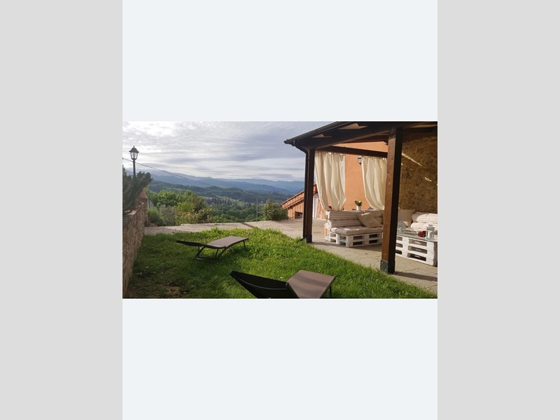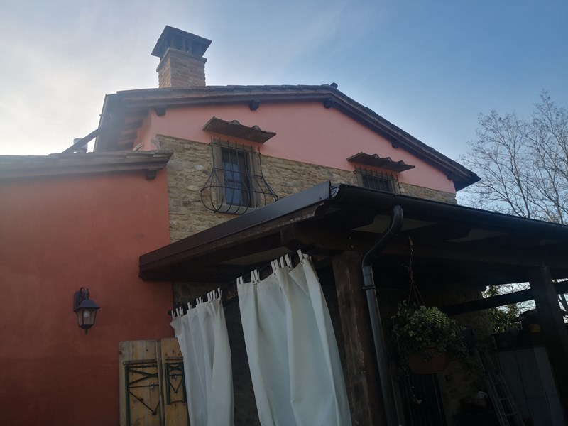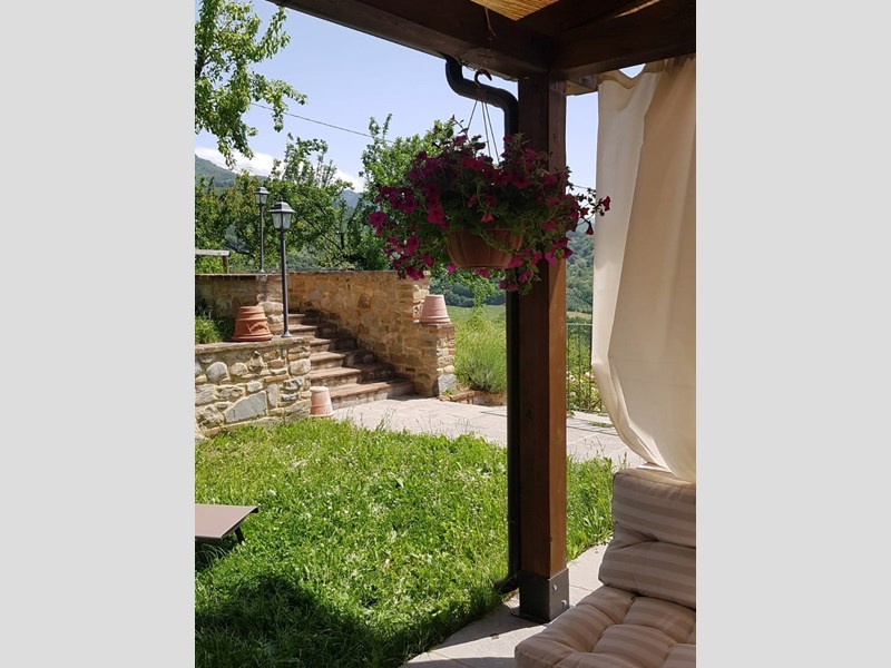 A 5 minuti dal centro di Vicchio e dalla Stazione del treno, e a 10 da quello di Borgo S.Lorenzo, con Stazione del Treno, Bus, Supermercati, Ospedale, a 15 minuti dal Circuito del Motomondiale, del Mugello, in posizione panoramicissima ed esposta completamente al sole a 360° durante tutta la giornata, si vende, Bellissimo Terratetto, Completamente e Finemente Ristrutturato di circa 110mq più 1.500 di giardino frutteto, con 2 ingressi indipendenti uno pedonale e l'altro carrabile, il terratetto comprende, un loggiato esterno in legno con divani e tavolino, e al piano terra, una cucina soggiorno, con camino, mentre al 1° piano ci sono 2 camere con bagno, più un salotto con pianoforte, il terratetto è stato completamente ristrutturato nel 2012, mantenendo l'originalità dell'immobile, con i soffitti in travi, travicelli e pianelle in cotto, scala in pietra serena, con le facciate completamente in pietra faccia a vista, stuccate e trattate. Il Riscaldamento a radiatori viene alimentato sempre dalla caldaia Hoval a pellet, e dall'impianto fotovoltaico per l'acqua calda sanitaria.