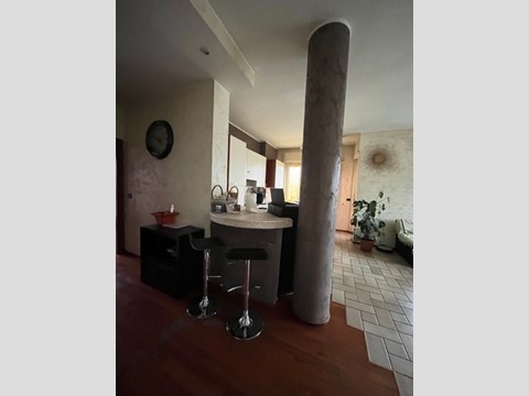E’ composto di: living su ampio soggiorno con angolo cottura, 2 camere, ripostiglio, biservizi, 2 balconi fruibili. L’immobile è stato ristrutturato radicalmente nel 1997 e sono stati sostituiti: gli impianti idrico/elettrici, i pavimenti, gli infissi esterni con doppio vetro a taglio termico, le porte interne e i pavimenti in palchetto e ceramica.