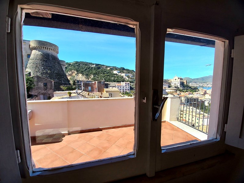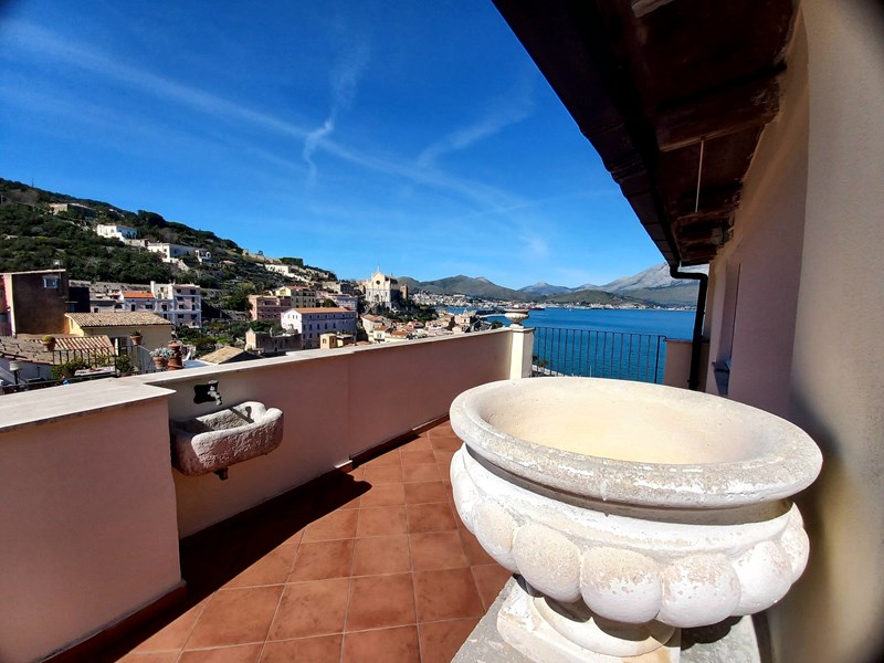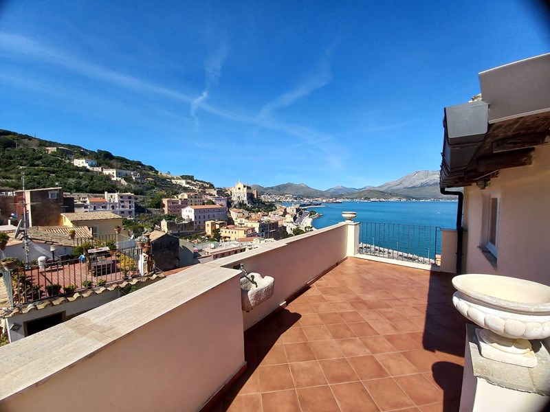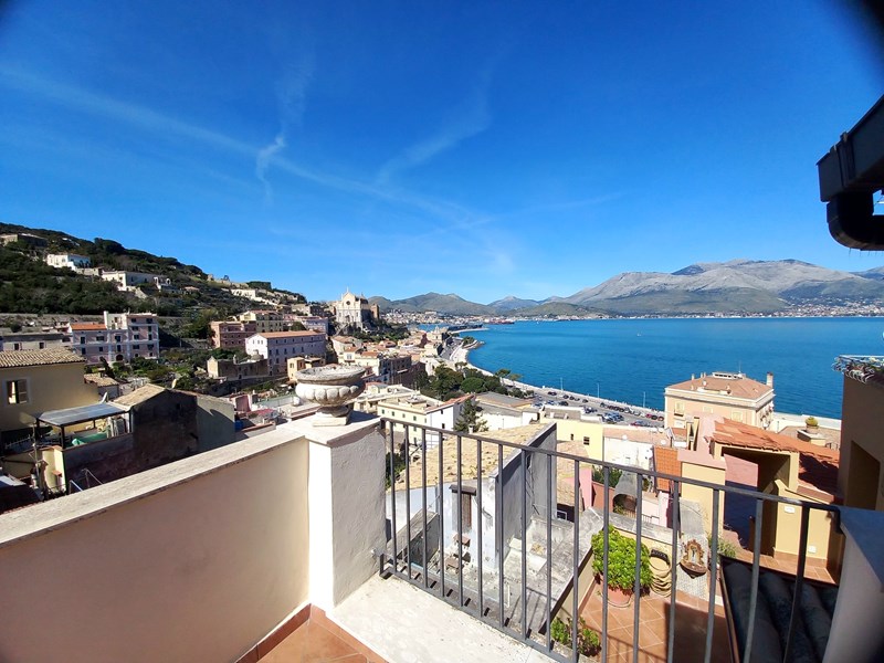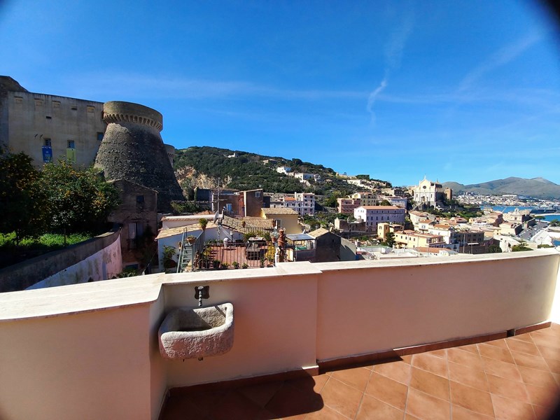 GAETA MEDIEVALE (via San Giovanni) nei pressi del Castello, nel cuore del Borgo, intero piccolo palazzetto, mq 150 distribuiti su piano terra, primo, e secondo, oltre ad ampio vano cantinato con sottostante antica cisterna. Doppio ingresso composto da salone, cucinotto, 2 bagni due camere, disimpegno, piccola mansardina, ampio vano cantinato e bellissima terrazza di copertura mq 20 con splendida vista panoramica sul Golfo. L’abitazione necessita di opere di ridistribuzione interna degli spazi al fine di esaltarne le potenzialità, termautonoma, in discrete condizioni. Cl En G