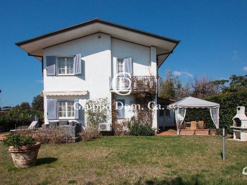 Forte dei Marmi - Centro - Villa singola a 600 mt dal mare, in zona residenziale e tranquilla, con giardino libero su quattro lati sul quale insiste un'area adibita al parcheggio, portico attrezzato per pranzi all'aperto sviluppata su due piani al suo interno composta da cucina abitabile molto luminosa, ampio soggiorno, 6 camere da letto e 5 bagni. Rif. AFS901