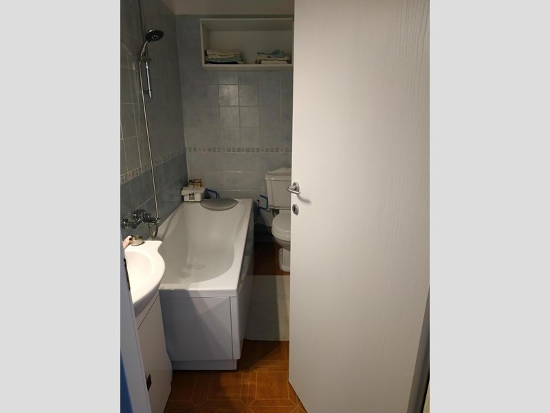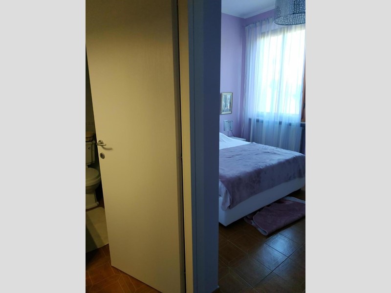 composto da cucina, soggiorno, 2 camere di cui può essere divisa in due camerette , 2 bagni. Ripostiglio sul pianerottolo delle scale