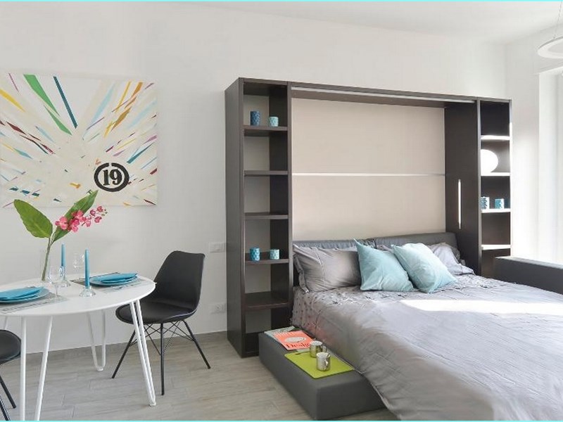 - un letto matrimoniale a scomparsa che quando viene chiuso si trasforma in divano
