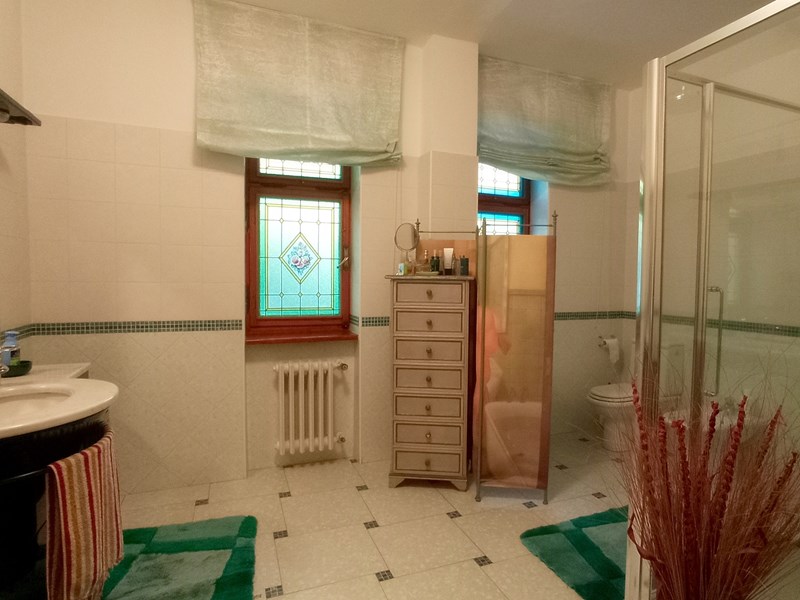 La seconda unità si trova al piano mansardato con la stessa composizione, leggermente ridotta per via della minor altezza dei soffitti. Completano la proprietà una grande taverna con cucina arredata e forno a legna, un salotto con camino, un bagno e un box per due auto di piccole dimensioni. I pavimenti sono tutti in gres porcellanato di ottima qualità e i bagni rivestiti e pavimentati con ceramiche anch'esse di ottima qualità.