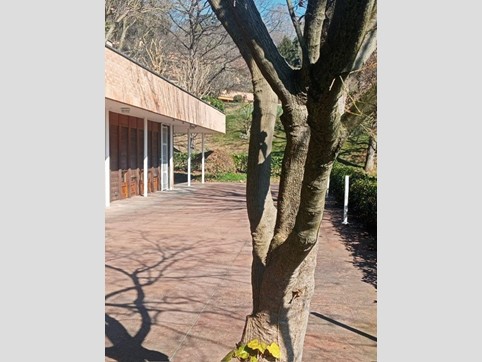 Grande zona esterna privata di mq. 300 con zona barbecue fronte campo da tennis e sulla dx piscina.