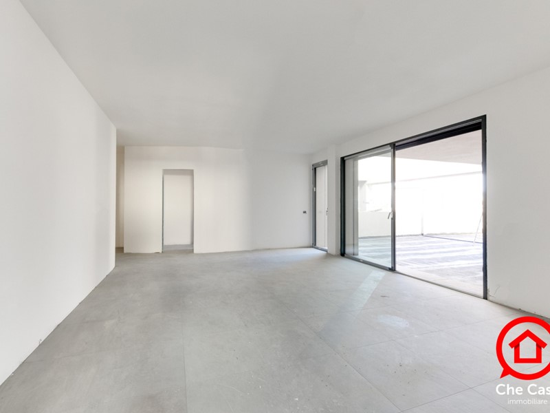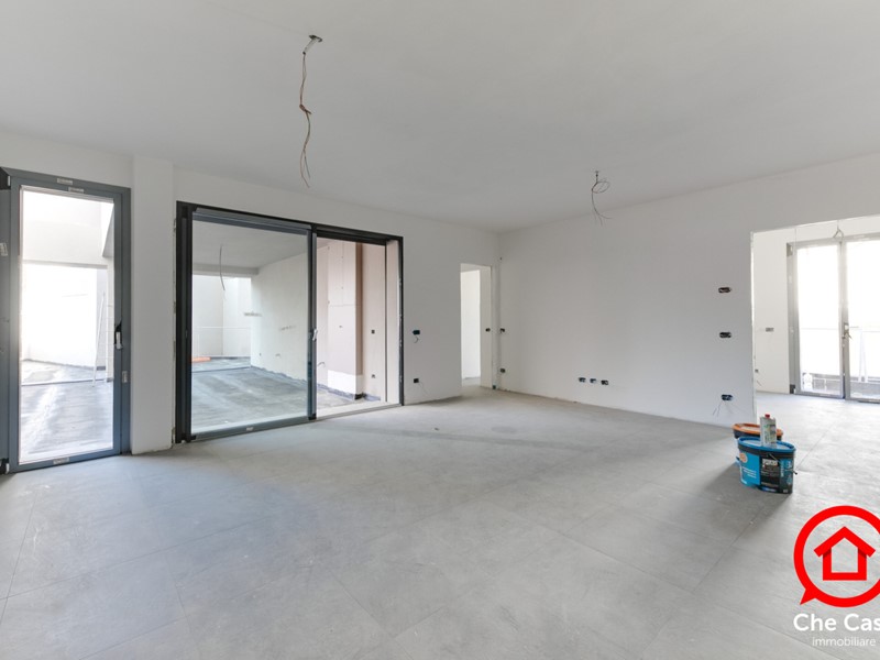 Soluzione F/piano primo : Ingresso su ampio e luminoso open space di circa 36 mq calpestabili, con grande porta finestra scorrevole che apre su loggia coperta e poi terrazzo abitabile per un totale di oltre 55 mq complessivi. Ideale per barbecue, pranzi cene e relax estivi. Antibagno e bagno finestrato a servizio zona giorno. La zona notte offre tre camere da letto: una padronale e due singole. Secondo bagno finestrato a servizio zona notte. Un secondo ampio balcone è accessibile da ogni camera da letto. Si completa di garage.