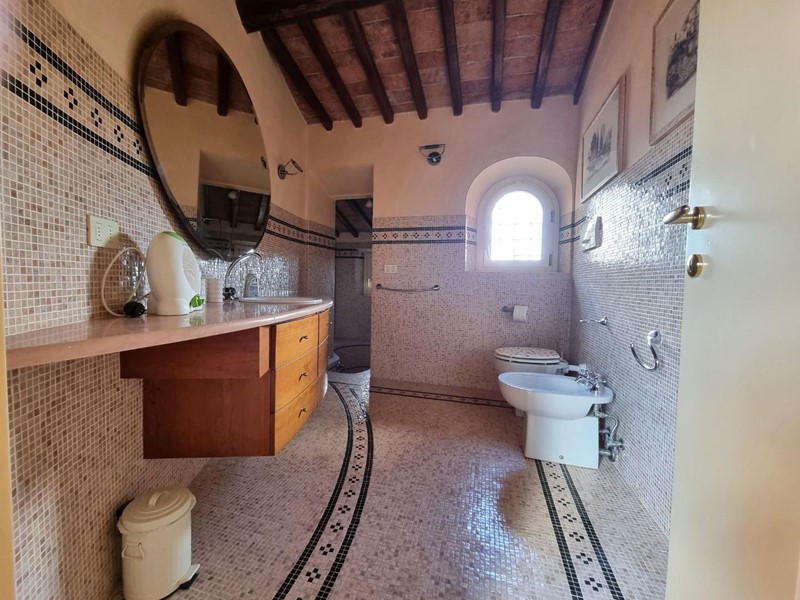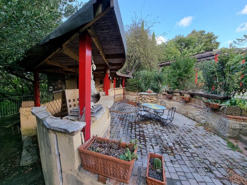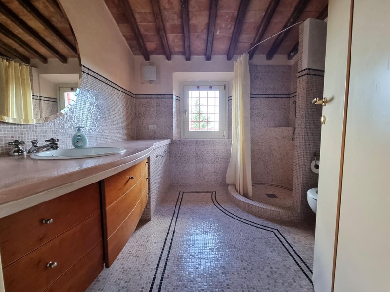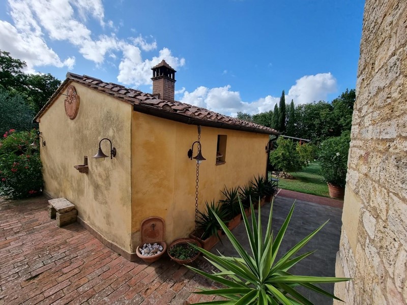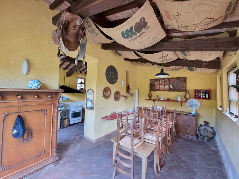 Casciana Terme Lari- In posizione collinare, dominante e molto residenziale, vendesi bellissima proprietà rustica composta da tre corpi principali, di cui la casa di circa mq 160, un annesso ristrutturato con cucina e forno a legna con adiacente bella sala da pranzo, ed una suggestiva antica chiesa etrusca; il tutto corredato da ampio garage a se stante di circa mq 40 ed un terreno pertinenziale di circa 16.000 mq tutto recintato con bellissimi vialetti in pietra che ci accompagnano sia alla piscina, sia allo stiloso bar esterno con cantinetta, sia al barbecue esterno o alle piantumazioni in genere.