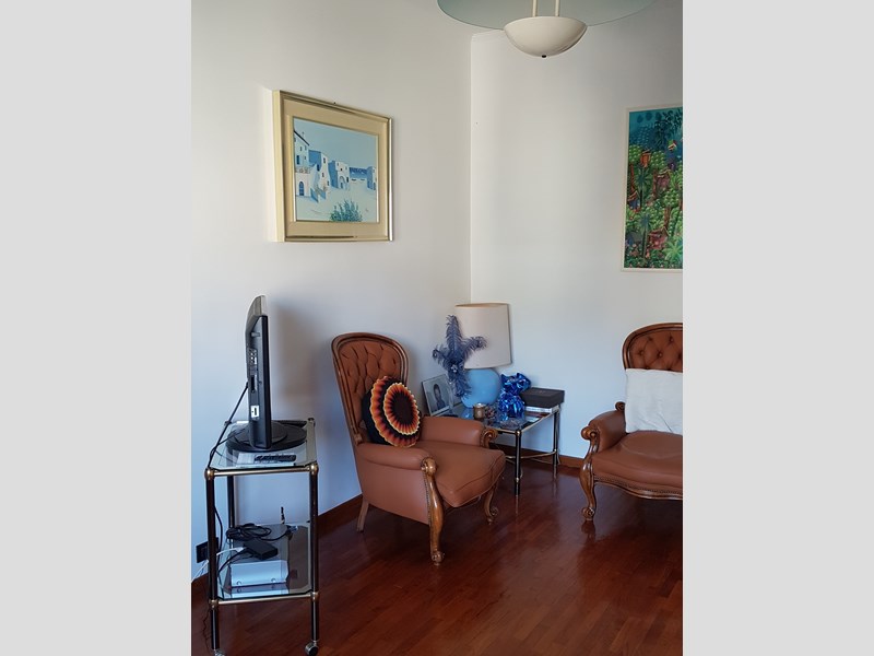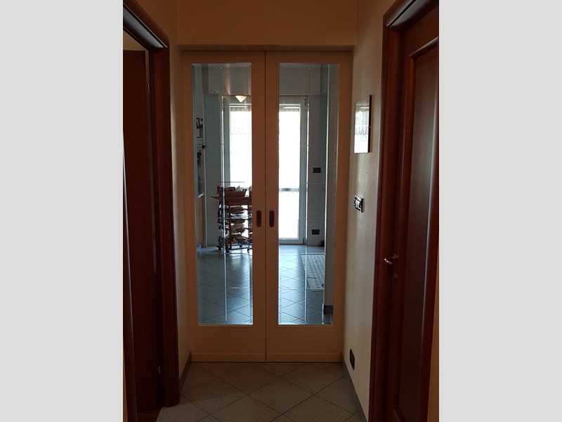 Gli interni si presentano in ottimo stato: pavimenti in parquet nelle due camere matrimoniali, piastrelle nelle altre stanze; porte in legno, finestre in pvc con doppio vetro, i serramenti esterni sono avvolgibili in legno e tutti motorizzati.