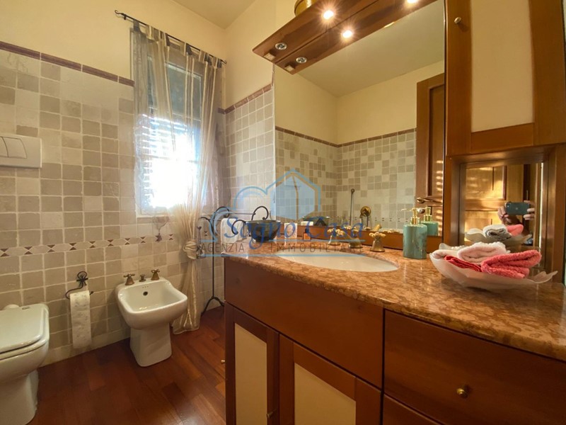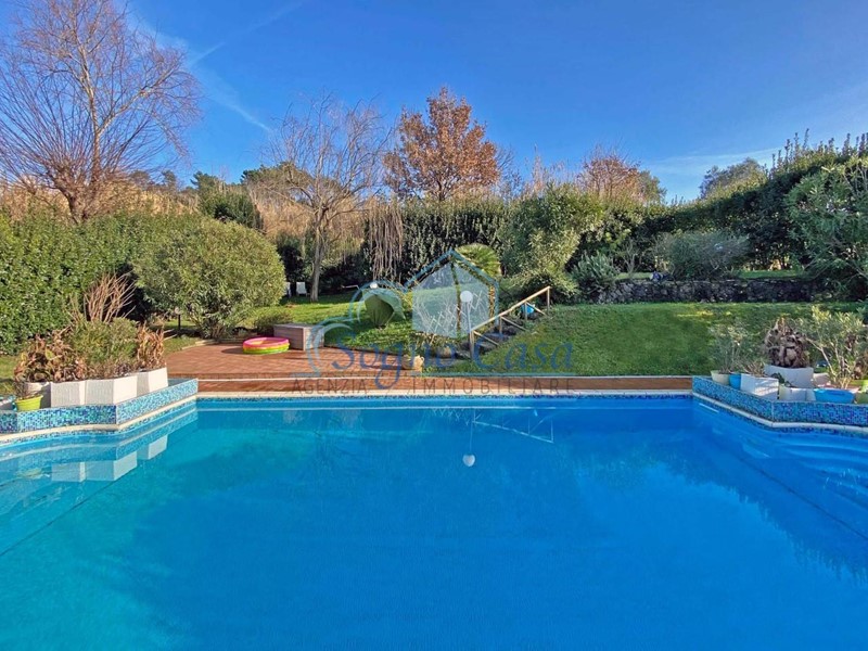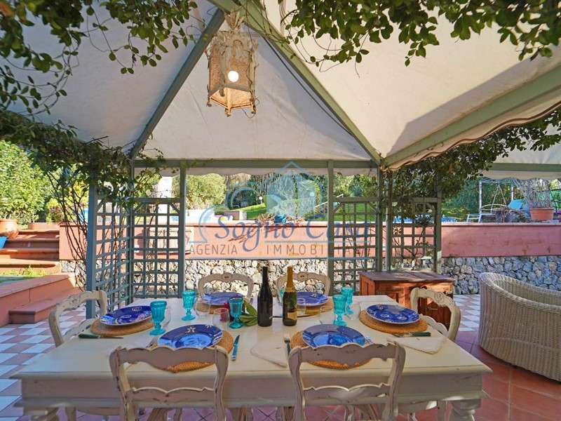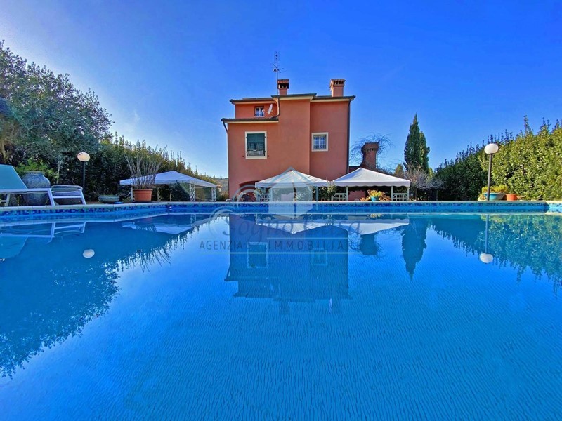 In zona residenziale, circondata dal verde, a 9 km dal mare, a pochi minuti dal Centro e da tutti i servizi, vendiamo Villa Indipendente di circa 330 Mq. P. Terra - Ingresso, ampia taverna con cucina a vista, ripostiglio, bagno, dispensa, studio, lavanderia, stireria, termo camino; P. 1° - Ingresso principale, 2 ingressi di servizio, disimpegno, ampio soggiorno, cucina, bagno, terrazza abitabile, patio al piano terra lato giardino. P. 2° - Disimpegno, 2 camere matrimoniali entrambe con bagno, cabina armadi; mansarda con camera matrimoniale servita da terrazzo, camera, bagno. VILLA CAMELIA Sarzana, Liguria - Italy ESTERNI: Il Giardino è ben curato e copre un area di circa 2.000 Mq. con zona patio e zona attrezzata per pranzi all’aperto, con barbecue e forno a legna, 2 gazebo, ricovero attrezzi e pozzo. Di fronte alla casa vi è la piscina di 10 x 5 mt. NOTE PARTICOLARI: La Villa è in buone condizioni e nel periodo estivo da Giugno a Settembre viene regolarmente affittata per affitti brevi ad uso turistico. Le rifiniture sono di lusso: pavimenti in marmo di Carrara e parquet, impianti d’aria condizionata e fotovoltaico, sistema d'allarme, ascensore interno, termo camino e splendida vista sulla Fortezza di Sarzanello. Caratteristiche: Tipologia: Villa Indipendente Stato: Ottimo Posti auto: 5 Piani: 3 Superficie: 330 m² commerciali, 300 m² calpestabili Locali: 10 Bagni: 5 Terreno: 2.000 m² Cancelli: 2 carrabili e 1 cancello pedonale Terrazzo Balcone Cantina Orientamento: nord, sud, est, ovest Anno di Costruzione: 2000 Riscaldamento: Autonomo Gas naturale Classe energetica: (175,5 kWh/m² anno) Vista: panoramica sulla Fortezza Di Sarzanello Dotazione: Ascensore Aria condizionata Termo camino Piscina 10x5 m Giardino di 2.000 mq Impianto fotovoltaico.