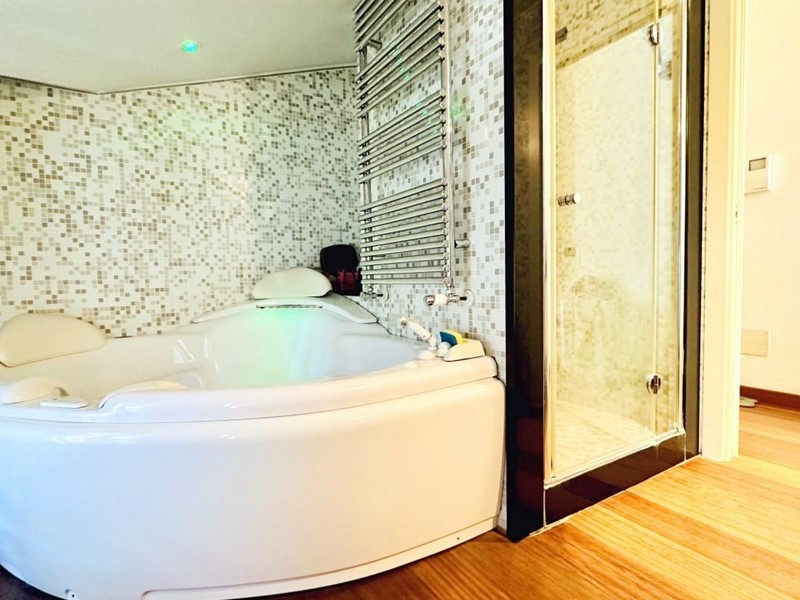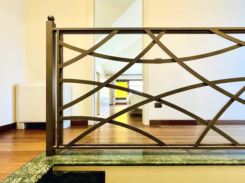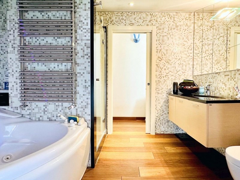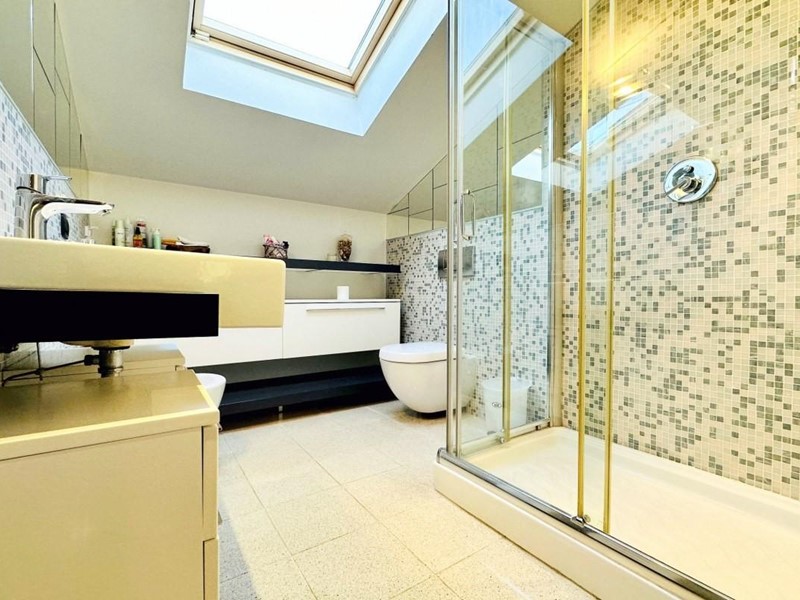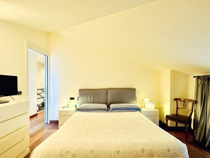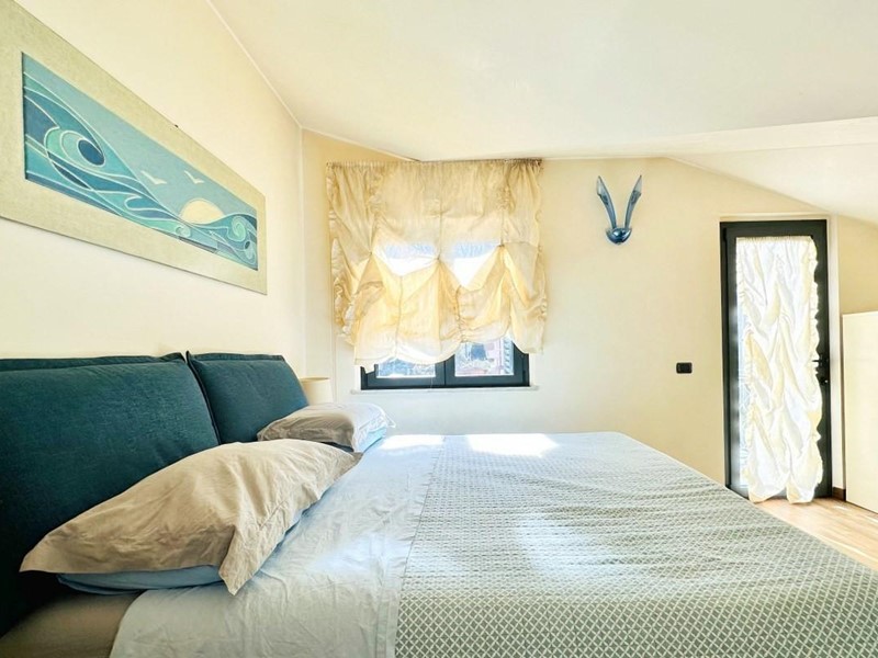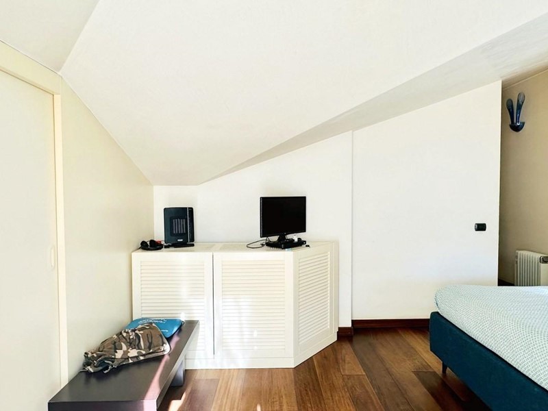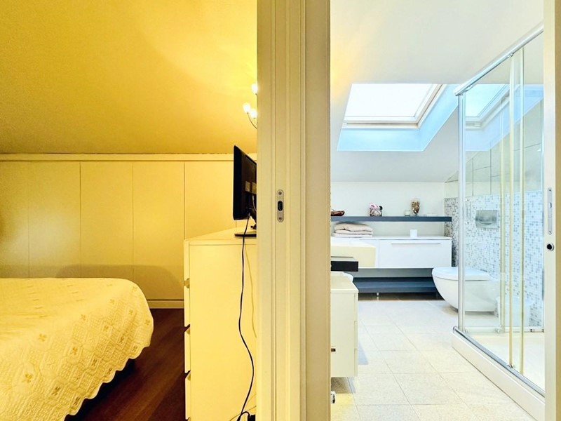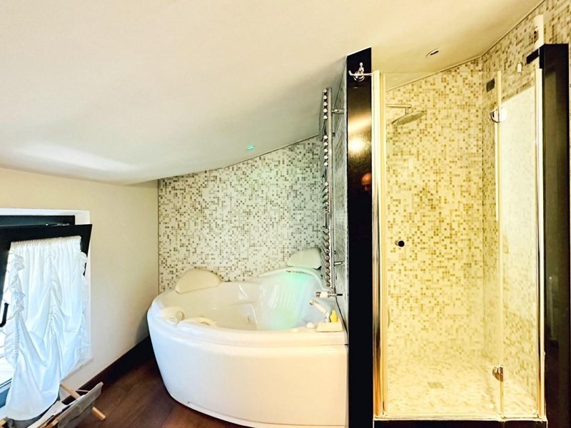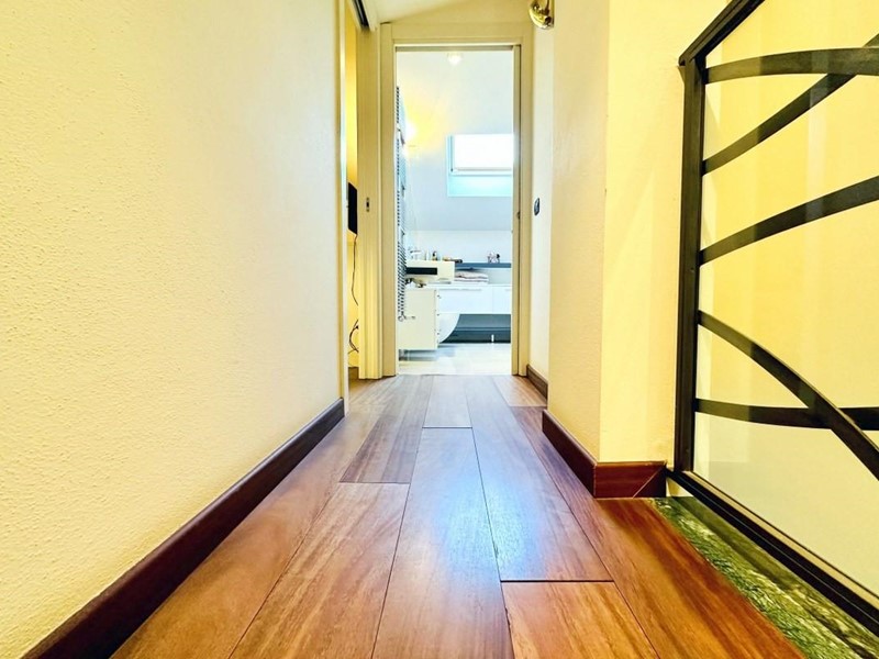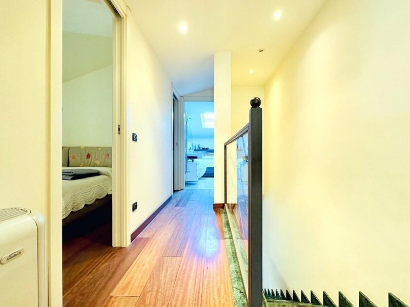 Salendo le scale si accede al primo piano, mansardato, occupato dalla zona notte. Quest'ultima si compone di una camera padronale dotata di cabina armadi e bagno con jacuzzi, oltre a due camere matrimoniali servite da un bagno con box doccia.