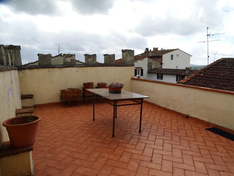 Nel centro storico di San Miniato, con terrazzo panoramico di c.a. 30 mq. con vista sul paese e fino alla torre, Appartamento al secondo e ultimo piano di una piccola palazzina, si compone di: ampio ingresso/disimpegno dal quale si raggiungono tutte le altre stanze, cucina abitabile con accesso al terrazzo ed alla sala, due camere matrimoniali e bagno con vasca. Al piano terra completa la proprietà un garage, una vera comodità per chi ama vivere nei centri storici.