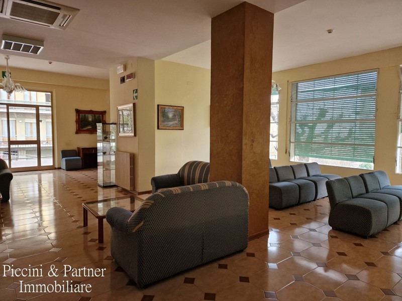 In posizione centrale ai due stabilimenti termali di Chianciano, proponiamo in vendita storico Hotel gestito a conduzione familiare. L’albergo, recentemente ristrutturato, si sviluppa su 6 livelli per una superficie di circa 1.790 mq. Al piano terra, hall, bar, ufficio e 3 camere ad uso privato. Dal primo al quarto piano troviamo le 36 camere tutte con bagno e terrazzo, dotate di aria condizionata, TV, asciugacapelli, cassaforte e frigo bar, mentre all’ultimo piano un appartamento mansardato di circa 160 mq composto da ampio soggiorno con termo camino e terrazzo panoramico con bella vista sulla Val di Chiana, la Val d’Orcia e il Lago Trasimeno, cucina abitabile, 4 camere e 5 bagni. Al piano seminterrato la sala colazioni e ristorante di circa 130 mq una grande cucina attrezzata ed in perfetto stato di manutenzione, magazzino, cella frigorifera e bagno. A completamento della proprietà, locale lavanderia, giardino e ampio parcheggio. Riscaldamento e condizionamento computerizzato che permette l’uso degli impianti in modalità autonoma. Infissi in alluminio con doppio vetro. L’immobile si presenta in ottime condizioni. In pochi minuti si può raggiungere il Monte Amiata, il Lago Trasimeno e i bellissimi borghi Medievali Umbri e Toscani come Chiusi, Montepulciano, Cetona, Radicofani, Sarteano, San Casciano dei Bagni, Pienza, San Quirico, Montalcino, Città della Pieve, Castiglione del Lago, Cortona, Orvieto e molti altri, dove arte, storia, cultura e una ricca gastronomia si fondono armoniosamente con la natura circostante caratterizzata da verdi colline, vigneti e uliveti.