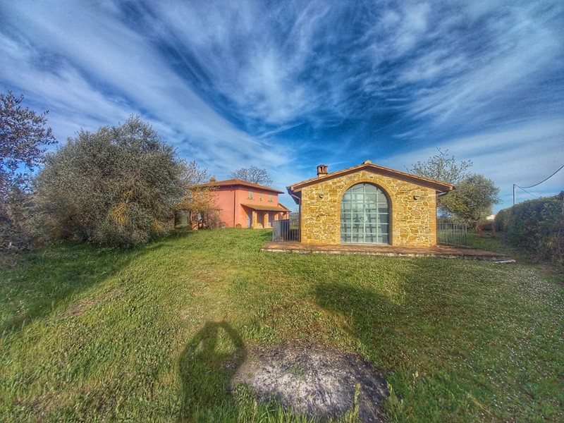 Bella proprietà ubicata in ottima posizione con splendida vista panoramica, composta da casa colonica e fienile circondati da 1 ettaro di terreno. L'immobile principale misura 200 mq complessivi, è strutturato su due livelli ed è così suddiviso: piano terra con loggiato, ampio salone, soggiorno-sala da pranzo, cucina con bel camino, disimpegno, bagno con finestra, scala d'accesso al piano primo composto da tre camere matrimoniali, grande bagno finestrato con doccia e vasca, lavanderia-ripostiglio. All'esterno della colonica troviamo anche un loggiato in muratura (ideale da adibire a rustico o magazzino) ed un bel pergolato. Il fienile in pietra è strutturato su due piani open space e misura 140 mq complessivi; è stato ricostruito recentemente con materiali di ottima qualità e presenta interni in stile rustico ma al tempo stesso rivisitati in chiave moderna. Il terreno con parco ed oliveto è completamente recintato. La proprietà si trova su una collina e gode di una bellissima vista panoramica. Prezzo trattabile.si
