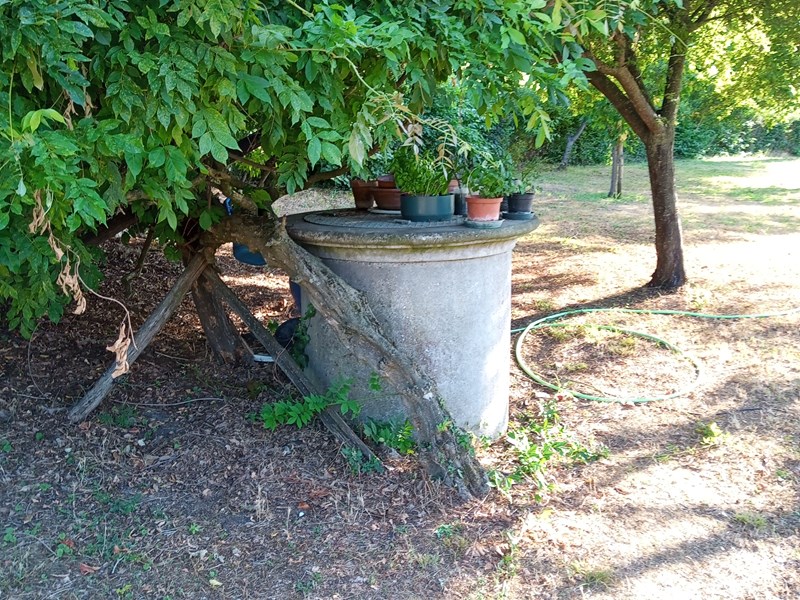 Il rustico dispone di un'ampia zona recintata a giardino in entrambe le unità per circa mq 2000 ed è dotato pure di un POZZO funzionante per l'annaffiatura dello stesso.