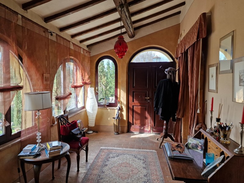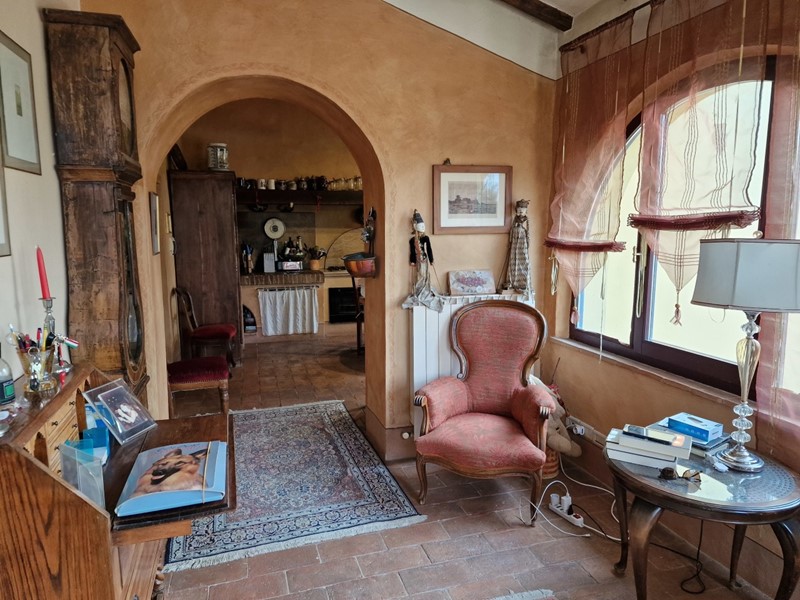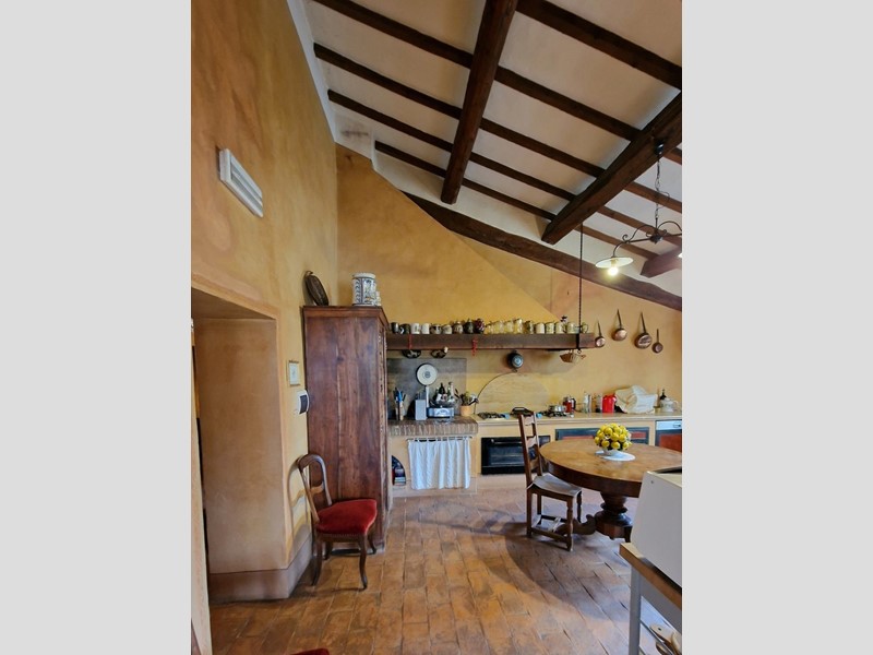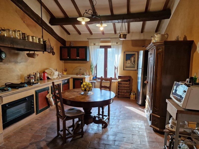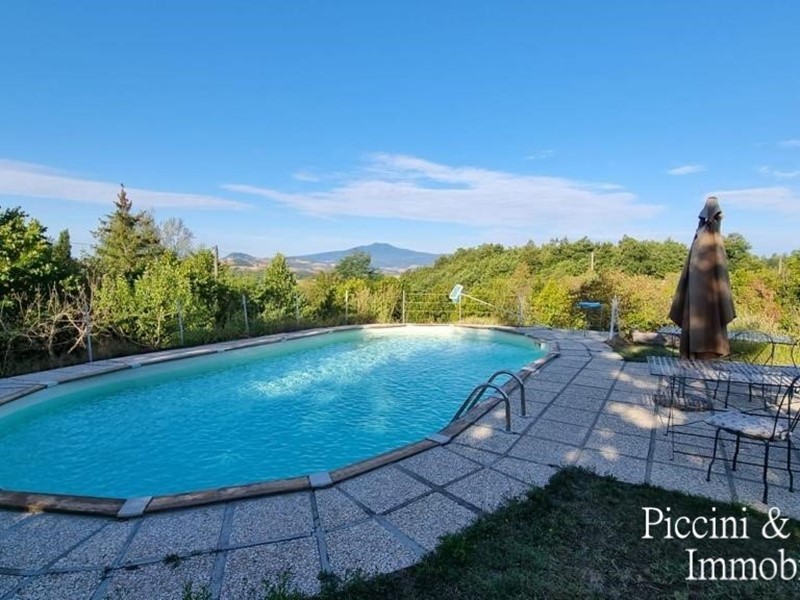In posizione collinare, con suggestiva vista sulla Val di Chiana e Val d'Orcia, proponiamo in vendita casale del '700 con annessi e terreno. L'immobile, finemente ristrutturato, è disposto su due livelli con ingressi indipendenti e così composto: Al primo piano appartamento caratterizzato da grandi vani con ingresso, salone con camino, sala da pranzo, cucina, disimpegno, 3 camere di cui una con bagno privato e le altre due con caratteristico soppalco e ulteriore bagno. Al piano terra, ampia veranda, 5 camere tutte con bagno en suite e lavanderia. Adiacente al casale, troviamo 2 annessi, uno utilizzato come cucina estiva e dotato di forno a legna, l'altro come magazzino. La proprietà è circondata da un curatissimo giardino dotato di piscina e gazebo. Completa la proprietà 3 ettari di terreno completamente recintato con uliveto e frutteto.