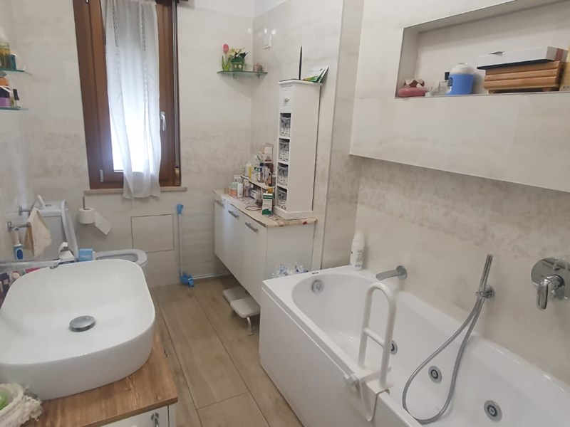In bel contesto ristrutturato nelle parti comuni e circondato da un grande e ben tenuto giardino condominiale appartamento al secondo piano con ascensore di ingresso su ampia zona giorno con uscita sul terrazzo, cucina abitabile con balcone, tre ampie camere e doppi servizi finestrati. Spaziosa cantina e comodo garage completano l'immobile. Nell'immobile sono stati sostituiti i serramenti, installato un nuovo condizionatore e rifatto completamente un bagno nel 2021.