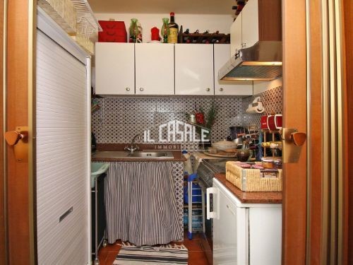 Al piano inferiore ampio salone panoramico, cucinotto, camera, bagno e ripostiglio.