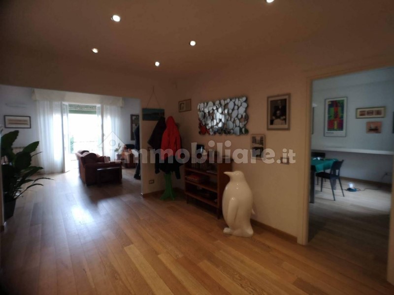 L'immobile si sviluppa tutto su un piano offrendo diversi ambienti arredati con gusto e si compone di: ingresso tradizionale ampio, salone doppio con affaccio ad una comoda terrazza pavimentata in legno, con tende da sole a capanno, ottimo parquet in tutti gli ambienti ad eccezione dei bagni, sala da pranzo, cucina abitabile, stanza lavanderia con comodo balcone e pilozzo, bagno principale con doccia e finestra e bagno di servizio. Il corridoio offre una elegante libreria e il controsoffitto con i faretti ci conduce alla zona notte dove troviamo una camera matrimoniale e tre camere medie di cui una con balcone privato ed una con porta finestra da cui si accede alla terrazza.