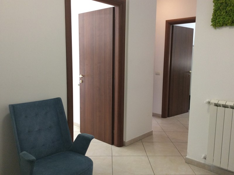 L’appartamento, di circa 80 mq, è ubicato al primo piano ed è attualmente composto da un ingresso/reception, 3 stanze, servizio, disimpegno e ripostiglio.