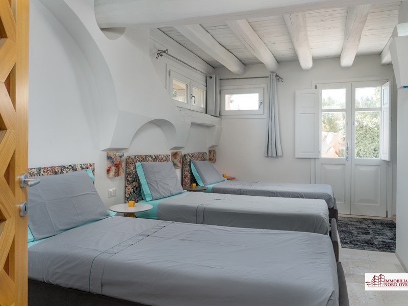 Villa Flora è un'incantevole dimora indipendente, di recente costruzione, ubicata a breve distanza dalla spiaggia e dal centro di San Teodoro.\nCaratterizzata dal tipico stile architettonico della Costa Smeralda, Villa Flora è realizzata e rifinita con materiali di assoluto pregio, quali marmo di Orosei, granito, legno, cotto spagnolo e ferro battuto e, ad impreziosirla, peculiari dettagli stilistici e raffinata scelta di arredo.\n\nLa dimora è circondata da un curato giardino, gode di una bella vista mare, dispone di una piscina privata e di una comoda area prendisole.\nInternamente, al primo piano, si compone di un un luminoso soggiorno con camino, di una cucina a vista con isola e ampio tavolo da pranzo, un bagno di cortesia, una camera padronale con bagno en suite e cabina armadio, e una seconda camera matrimoniale con bagno en suite.\n\nAl piano inferiore vi sono una camera con tre letti singoli ed una camera matrimoniale, che condividono il bagno, ed un'ampia camera matrimoniale con bagno en suite.\n\nTutte le camere al piano inferiore hanno accesso diretto al giardino.\nLa villa è circondata da grandi verande coperte, una comoda zona pranzo esterna con barbecue, salotto esterno e spazio prendisole.\n\n- Camere da letto 5\n- Bagni 4+1 \n- Bbq\n- Piscina privata\n- Internet Wi fi\n- Aeroporto Olbia Costa Smeralda 20' \n- Porto di Olbia 25' \n- San Teodoro centro 5' \n- Puntaldia marina e golf club 10'\n- Costa Smeralda 40'\n\n\nCODICE IUN F1499\nCIN IT090092B4000F1499 - Maggiori Dettagli: Porta blindata, Aria condizionata, Piscina