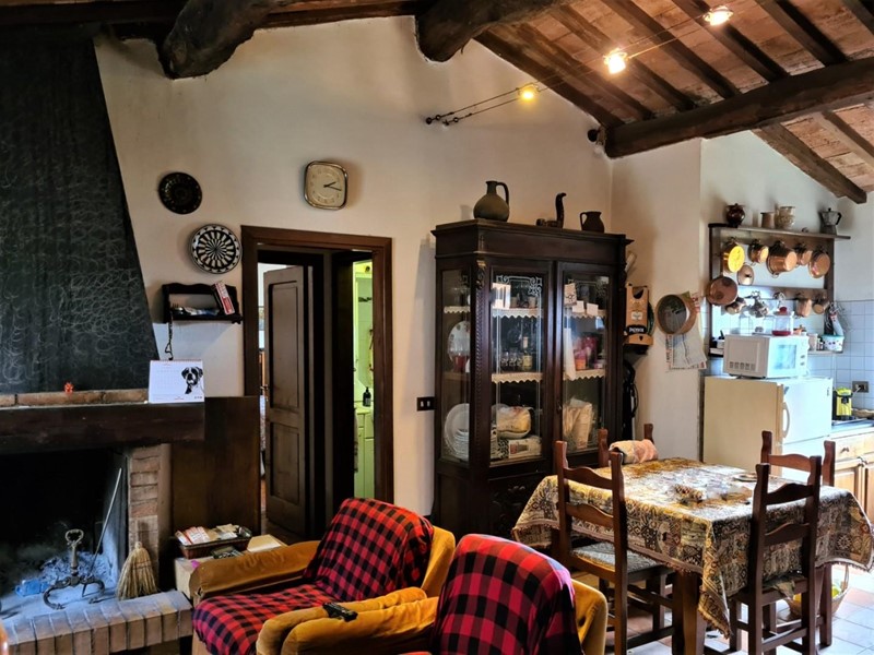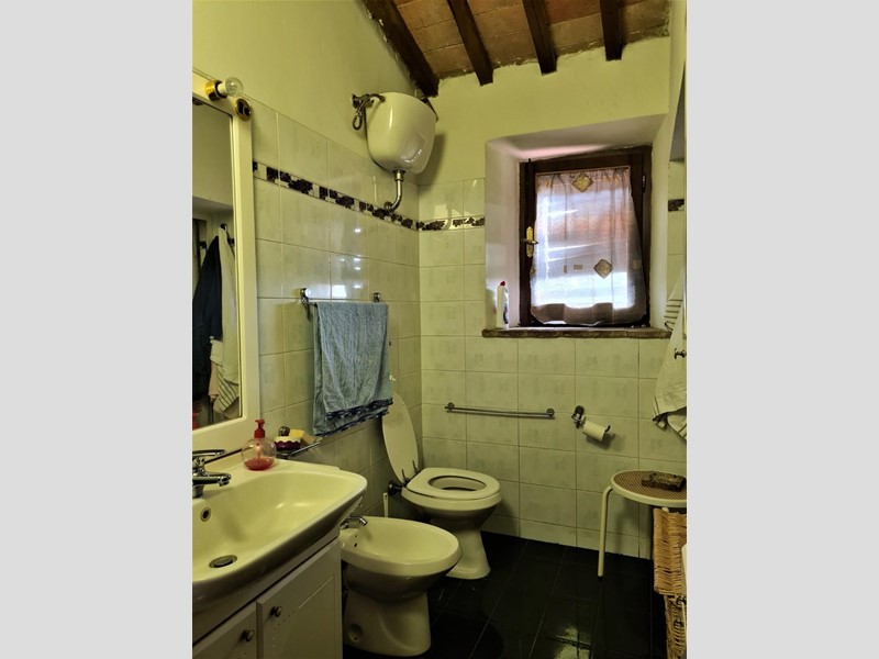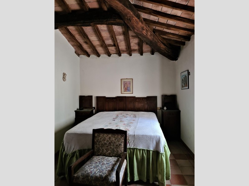 Casciano - Murlo - Fuori dal paese all'interno di un caratteristico borgo porzione terratetto di un immobile indipendente con struttura in pietra sviluppato su due livelli da una scala esterna si accede al piano primo nella zona giorno con cucina/soggiorno con caminetto, tre camere da letto di cui una con ampia terrazza che si affaccia sulla vallata, bagno finestrato, al piano terreno collegato da scala interna ampia zona rustica con possibilità di seconda cucina, camera matrimoniale, bagno e ripostiglio. Di proprietà ampio giardino con annesso di mq. 38. Buone le condizioni generali.