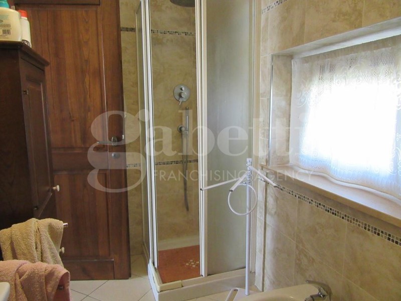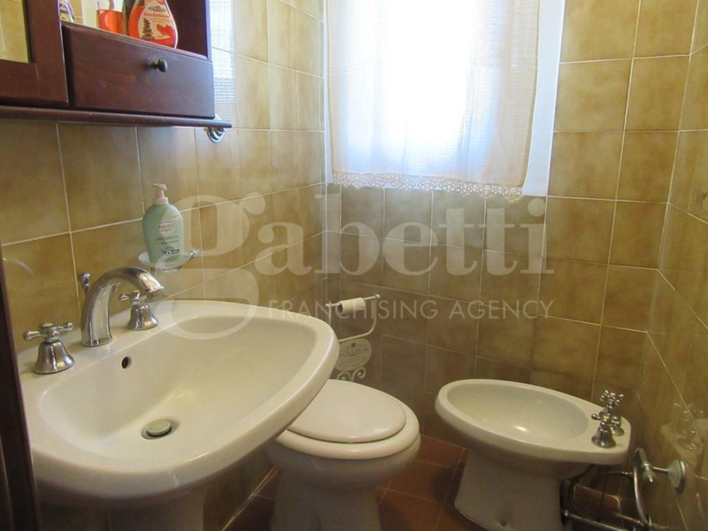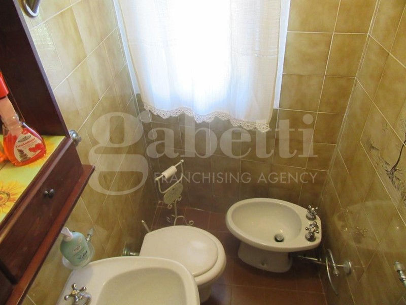 Bagno di Gavorrano - Appartamento al 1° piano in buone condizioni con ingresso indipendente e corte esclusiva, composto da soggiorno con accesso ad una veranda chiusa e finestrata, la cucina è abitabile, studio, bagno con vasca e ripostiglio uso lavanderia. Nella zona giorno esiste la possibilità di creare un open space di 45 mq. Nel balcone di ingresso prosegue una terrazza abitabile di circa 15 mq. La zona notte è composta da 2 camere e bagno con doccia. Le finestre sono nuove in PVC color legno e doppi vetri, in legno anche le porte. Dalla corte esclusiva si accede alla cantina di circa 45 mq con altezza di circa 2,70 m.