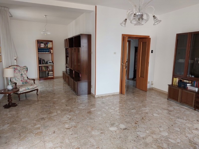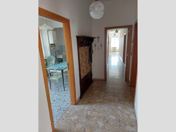 L’appartamento, è composto da ingresso, cucina con caminetto e retrocucina, bagno di servizio, luminosissima e grande sala con area salotto dotata di 4 finestre e balcone tutte con affaccio sulla Cattedrale, disimpegno con lungo corridoio che porta a 2 ampie camere di cui una con portafinestra sulla terrazza, 2 camerette, un bagno con ampia doccia a filo pavimento recentemente ristrutturata, terrazza con lavandino.