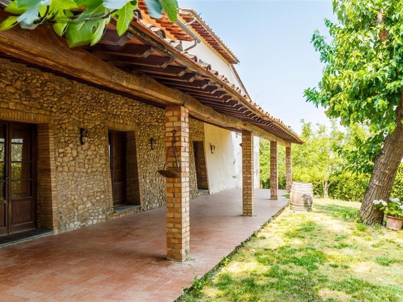 La casa è circondata da un grande giardino dal quale si può ammirare una magnifica vista panoramica e stare a contatto con la natura tra olivi, piante aromatiche e fiori. Terreno di 10 ettari complessivi con bosco, seminativo ed oliveto di circa 2 ettari completamente recintato con quattro cancelli di accesso di cui uno con apertura automatica a distanza.