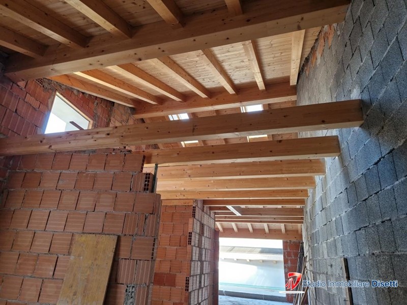 Porzione di casa già ristrutturata, da ultimare internamente, composta al piano strada da soggiorno con cottura, ingresso, ripostiglio, bagno, scala che porta al primo piano composto da due camere, bagno, guardaroba, terrazzo e soppalco in legno.