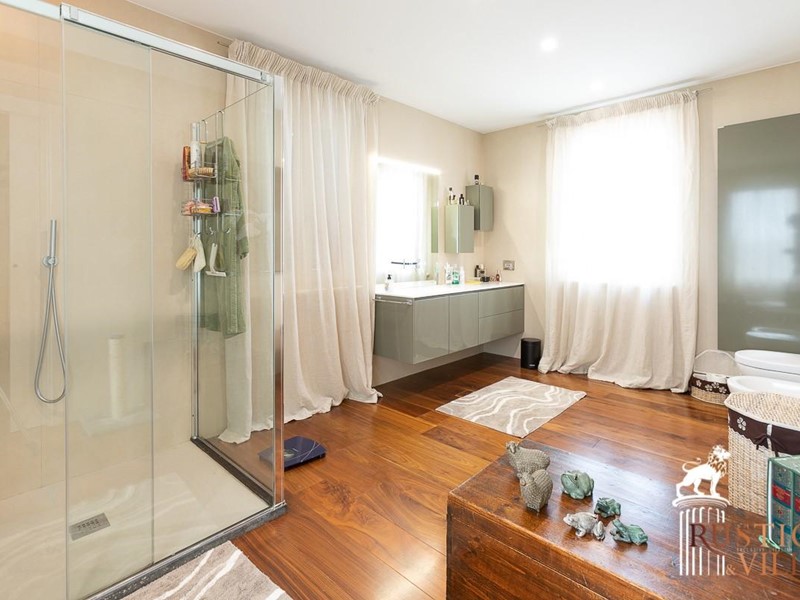 Posta in zona di aperta campagna tra Pisa e Lucca vi è una proprietà di Lusso ecosostenibile con giardino e parco, costituita da due fabbricati, la Villa padronale e la dependance.