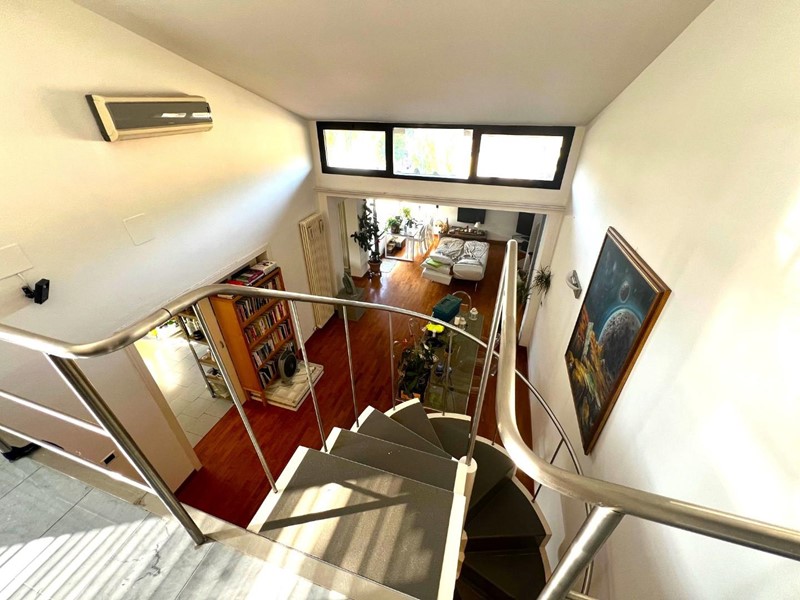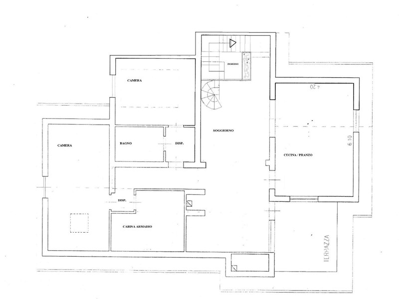 ingresso in ampio VANO SCALA ESCLUSIVO, ampio soggiorno CON CAMINO, cucina/pranzo abitabile separata con accesso a TERRAZZA a tasca, disimpegno notte, una camera matrimoniale, una cameretta mansardata, oltre un ripostiglio/guardaroba al piano secondo.