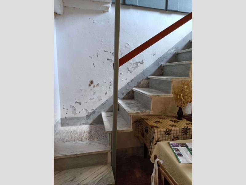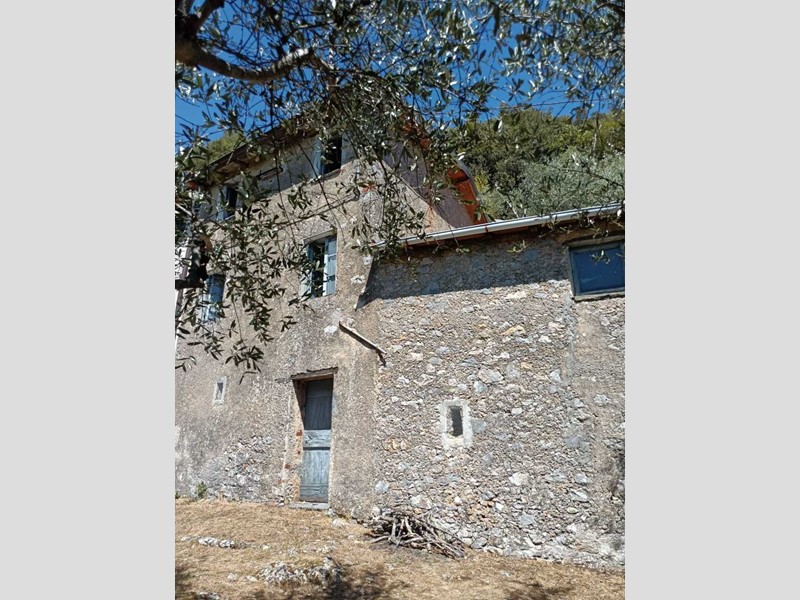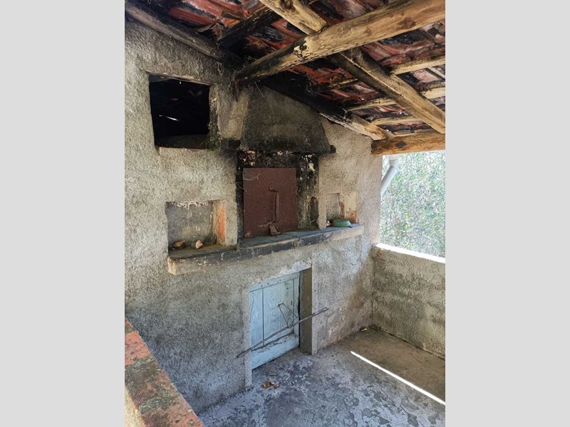 Si presenta disposta su tre livelli : Al piano terra ampia stanza adibita a legnaia ..forno a legna esterno Al piano superiore ingresso, cucina con camino, grande stanza, servizio e due camere. All'esterno forno a legna, uliveto (50 ulivi a terrazza) e 100 mt di bosco.