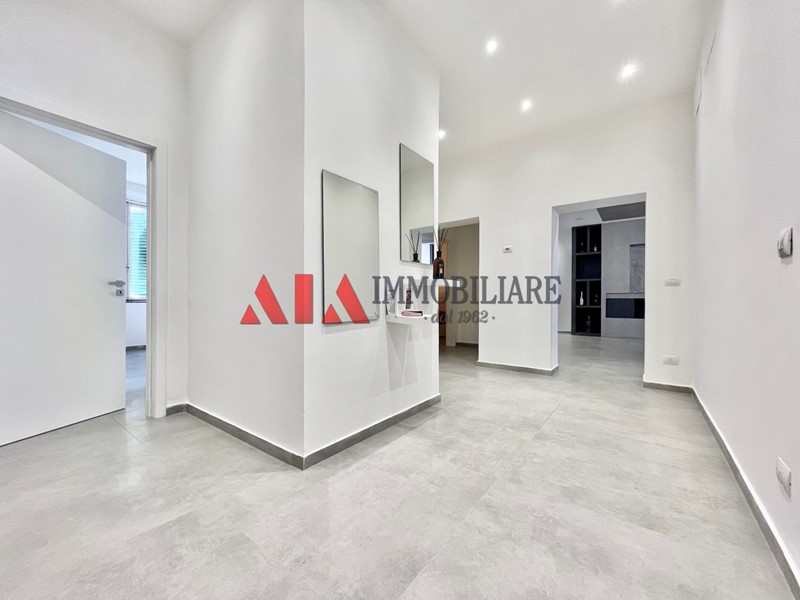 PONTEDERA CENTRALISSIMO: L'Agenzia Immobiliare AIA propone in vendita un moderno appartamento con terrazza abitabile ubicato al primo piano di piccolo palazzo di sole due unità abitative, collocato nei pressi di Corso Matteotti. L'immobile, completamente ristrutturato e praticamente mai abitato, si compone di un grande ingresso che distribuisce i vari ambienti tra cui la cucina abitabile con isola centro stanza ideale per snack e colazioni, un utile ripostiglio, per terminare poi nel grande salone sapientemente ristrutturato in stile moderno con particolari accorgimenti estetici come il ribassamento del soffitto opportunamente studiato per valorizzare ambienti fulcro come l'area relax, oltre all'inserimento di sistemi di illuminazione con gradevoli effetti soffusi; caratteristica costante, questa, che si ritrova anche in altri ambienti della casa. Sia dalla cucina che dal salone si accede alla terrazza abitabile ideale per momenti conviviali all'aria aperta; interessante la soluzione adottata di avere la predisposizione per una seconda cucina all'interno di un locale collocato sulla stessa; tale locale può essere anche utilizzato come dependance. L'area notte si va a distribuire in due zone separate dell'abitazione; l'ala padronale gode di una spaziosa camera con cabina armadio dedicata e finestrata; l'altra camera matrimoniale risulta anch'essa essere ben funzionale. Menzione particolare per il bagno poiché, non solo è di generose dimensioni e quindi ben fruibile, ma anche per la scelta dei materiali impiegati dove i colori scuri contrastano con colori più tenui; qui si trovano anche una comoda stanza lavanderia ed un balcone. Completa la proposta immobiliare un comodo ripostiglio al piano terra. Classe Energ. in fase di valutazione. €uro 270.000,00 Rif. AP150