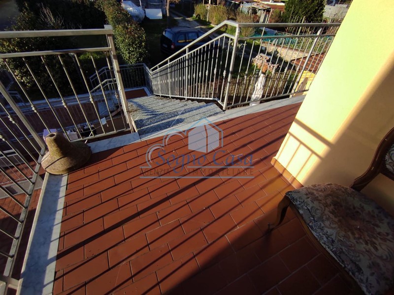 Luni in zona tranquilla immersa nel verde a circa tre chilometri dal mare porzione di bifamiliare al primo piano con ingresso indipendente con ottima esposizione composta da: ingresso,soggiorno con uscita su ampio balcone,cucina abitabile,due camere da letto matrimoniali di cui una con balcone,bagno con doccia e finestra. Sottotetto uso soffitta,cantina.Giardino.Posti auto L'immobile e' stato ristrutturato nelle parti esterne (2008 tetto e facciata) Sono stati sostituiti i radiatori e ristrutturato il bagno.