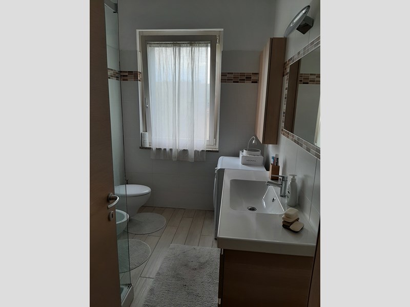 Agugliano periferia, in zona tranquilla a 4 km dal centro, con comodo accesso diretto dalla strada provinciale, privato vende luminosissimo appartamento su un unico livello + mansarda abitabile, in villa bifamiliare di recente costruzione con corte comune asfaltata e piantumata, con cancello automatico ed ingresso indipendente. Entrata al piano terra su salone open-space di 47 mq con zona cucina a vista, isola con forno, termocamino a legna e porte-finestre sul giardino e sul balcone. Ampio corridoio nella zona notte con tre camere, delle quali una matrimoniale, con accesso tramite porta finestra, sul balcone; due camere singole, un bagno finestrato con grande doccia, ripostiglio. Parquet in rovere in tutte le stanze, tranne il bagno. Da scala in legno nel salone, si accede a mansarda abitabile adibita a quarta camera ospiti, con finestra e armadi a muro. Riscaldamento a pavimento, autonomo, alimentato a gpl con caldaia a condensazione o termo-camino a legna dotato di impianto accumulatore. Classe energetica C. Finestre in legno con doppio vetro (6+6), doppia parete con cappotto interno, soglie finestre in granito. Posti auto esterni dentro alla corte privata e dotata di illuminazione. Impianto automatico di irrigazione nel giardino piantumato ad ulivi, a servizio dell'appartamento. Si cede con arredo cucina e bagno come in foto. NO AGENZIE