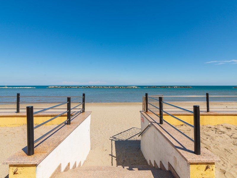 SAN MAURO PASCOLI-FRAZIONE MARE. Vendesi complesso residenziale composto da 8 appartamenti bilocali, con posto auto, DIRETTAMENTE SULLA SPIAGGIA. Ogni appartamento è composto da ingresso su soggiorno con angolo cottura, disimpegno, bagno finestrato, ogni camera da letto si affaccia sul mare, regalando una suggestiva vista. Il complesso residenziale è dotato della sua spiaggia privata e ogni appartamento ha a disposizione il suo ombrellone con i lettini.