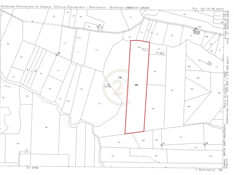 Motta Sant'Anastasia Via A. Caponnetto pressi albergo valle degli ulivi in una zona riservata e tranquilla lontano dal traffico si propone la vendita di un terreno agricolo della superficie di mq 9900 con progetto approvato e concessione edilizia per la realizzazione di una casa unifamiliare per civile abitazione composta da: Piano semi interrato adibito a cantina e magazzino di circa 100 mq, un piano terra abitabile di circa 104 mq e un piano sottotetto destinato locale di sgombero di circa mq 70.