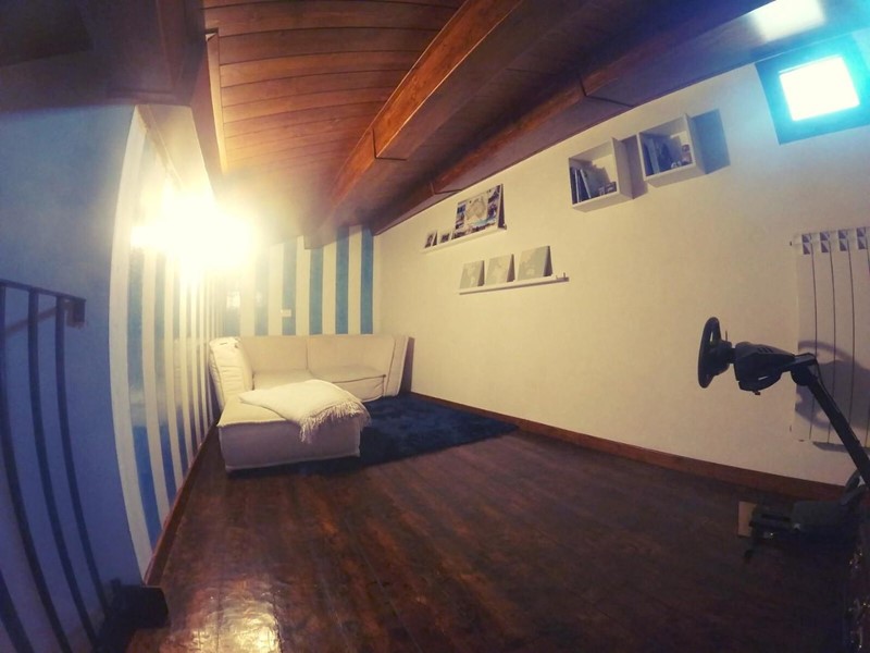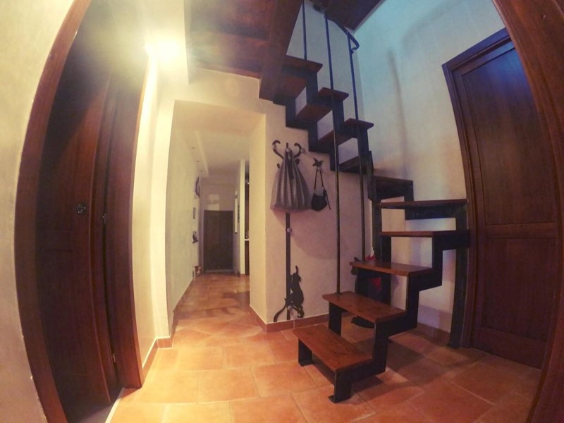 L’appartamento è composto da: soggiorno/cucina, camera matrimoniale, bagno, studio e disimpegno dal quale si accede attraverso una bellissima scala in legno/ferro ad un soppalco di 12 mq circa.