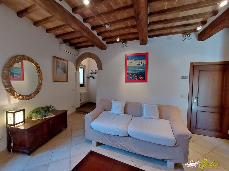 Sogna di vivere nel borgo medievale di San Gimignano, patrimonio UNESCO, in un lussuoso appartamento di 120 mq con vista panoramica e garage incluso. \n\nQuesta casa di pregio, perfetta per una famiglia o come investimento, si trova al primo piano ed è composta da una grande zona giorno con soffitti a travi e travicelli in legno, una zona pranzo separata da un antico arco a mattoni, un angolo cottura, un bagno e un piccolo angolo lavanderia .\n \nUna scala in pietra serena conduce alla zona notte, con due ampie camere da letto, di cui una con bagno privato, e un bagno principale con vasca e doccia. \n\nLa camera più piccola ha accesso ad una mansarda sottotetto, perfetta come cabina armadio o ripostiglio.\nL' abitazione è luminosa e ben rifinita, con un pavimento in parquet e una vista mozzafiato sulle torri e i tetti del borgo. \nInoltre, è facilmente accessibile con i mezzi pubblici, ha una cantina spaziosa e un garage di 17 mq. \n\nNon perdere l'opportunità di visitare questa casa da sogno, contattaci subito: \n\nGEKO IMMOBILIARE E CONDOMINI SNC info@gekoimmobiliare.com - www.gekoimmobiliare.com Cell. 331 5805031 - 331 2222793 - 0577891135. - Maggiori Dettagli: Climatizzato, Porta blindata, Cucina Abitabile, Camino